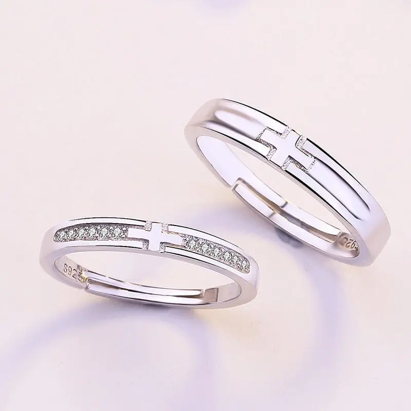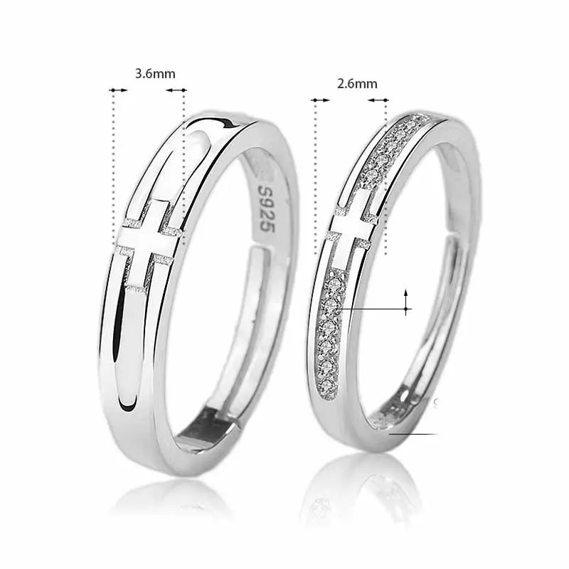 Simple CZ Cross 925 Sterling Silver Adjustable Promise Ring