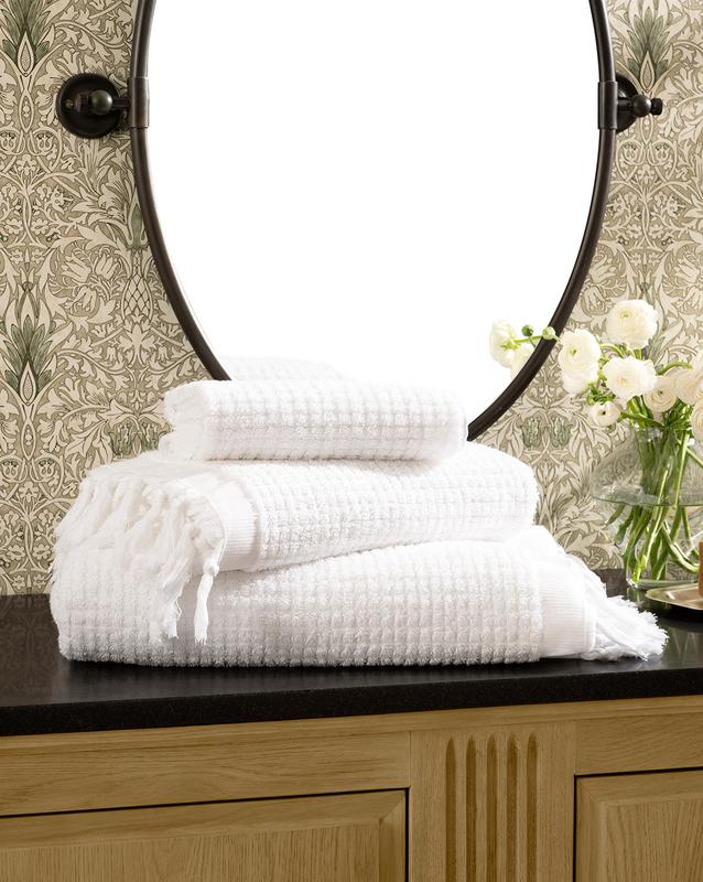 Woven from 100% organic cotton, the Anzio Bath Collection brings a sense of everyday luxury to the bath. Its rich texture and soft, absorbent hand balance form and function, while subtle detailing lends an elevated simplicity that feels at once timeless and thoughtfully modern. Inspired by the serenity of spa-like spaces, designed to elevate daily rituals through texture, comfort, and organic craftsmanship.
