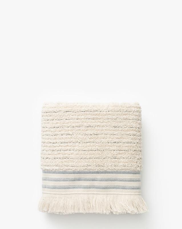 Textured and elegant, the Frayser Bath Collection is made from 100% long staple Turkish cotton. The simple colorway is easy to style with your bathroom decor, while the high-quality construction of the hand towel, bath towel, and bath sheet lends itself to comfort and durability, only growing softer with time.