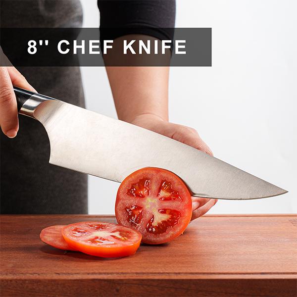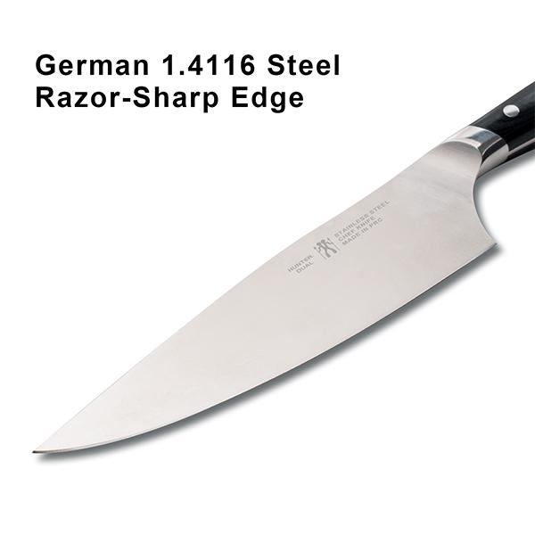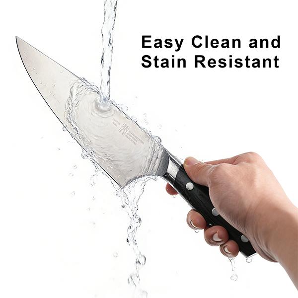 CORE GERMAN STEEL: The blade is forged from German 1.4116 stainless steel, excellent balance of hardness and toughness, long-lasting sharpness, strong resistance to rust and corrosion, easy to maintain.