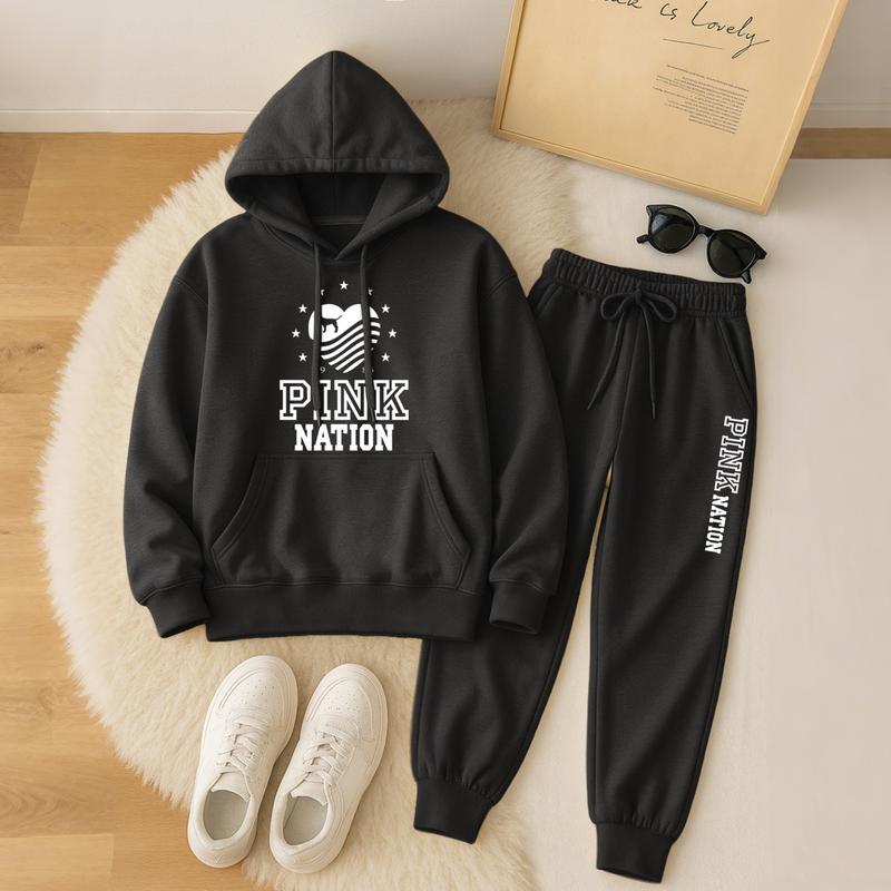 Printed Hoodie & Drawstring Sweatpants Set