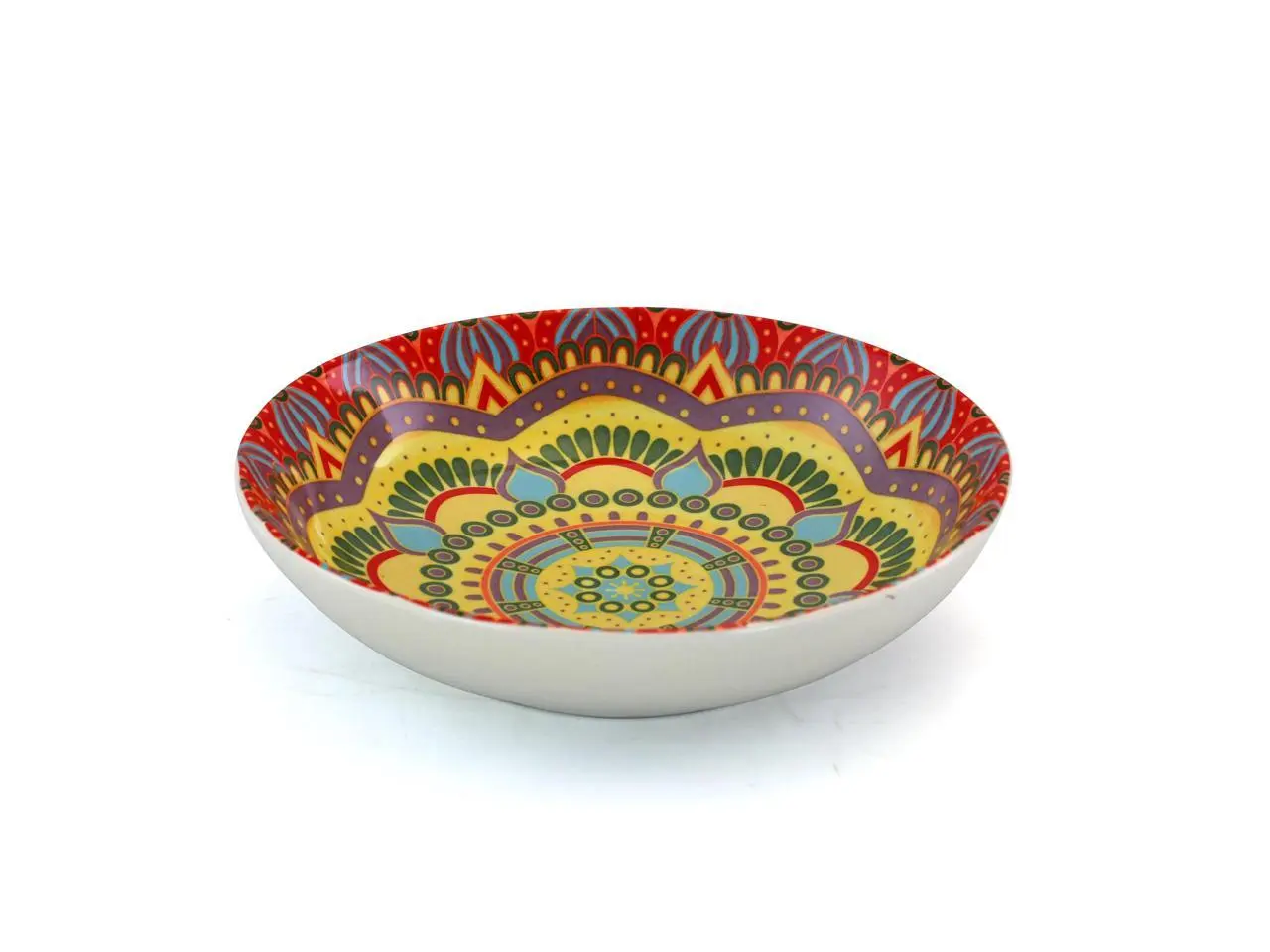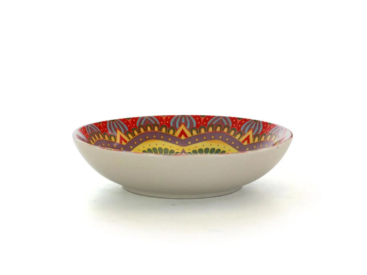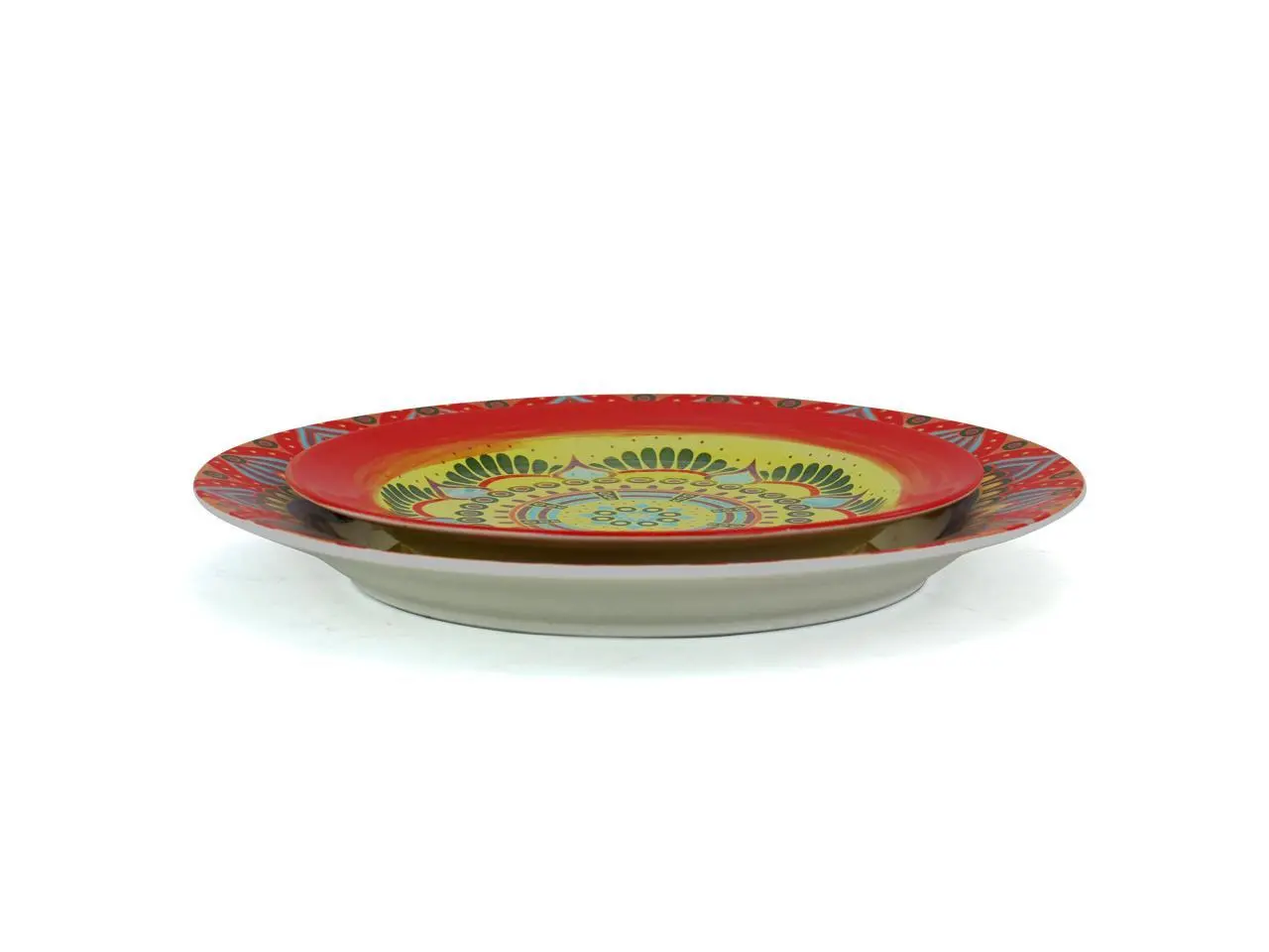 The Elama Zen Red Mozaik 16 Piece Dinnerware Set is a lovely addition of color for your table. Whether you choose to host a large party or enjoy an intimate meal in your home, these plates will brighten up your day with colorful and vibrant tones and intricate bohemian style. While this dish set for 4 is a wonderful way to serve many meals, it's designed to be versatile and can easily double as serving-ware. This stoneware collection is also both dishwasher and microwave safe making clean up and reheating simple and efficient.