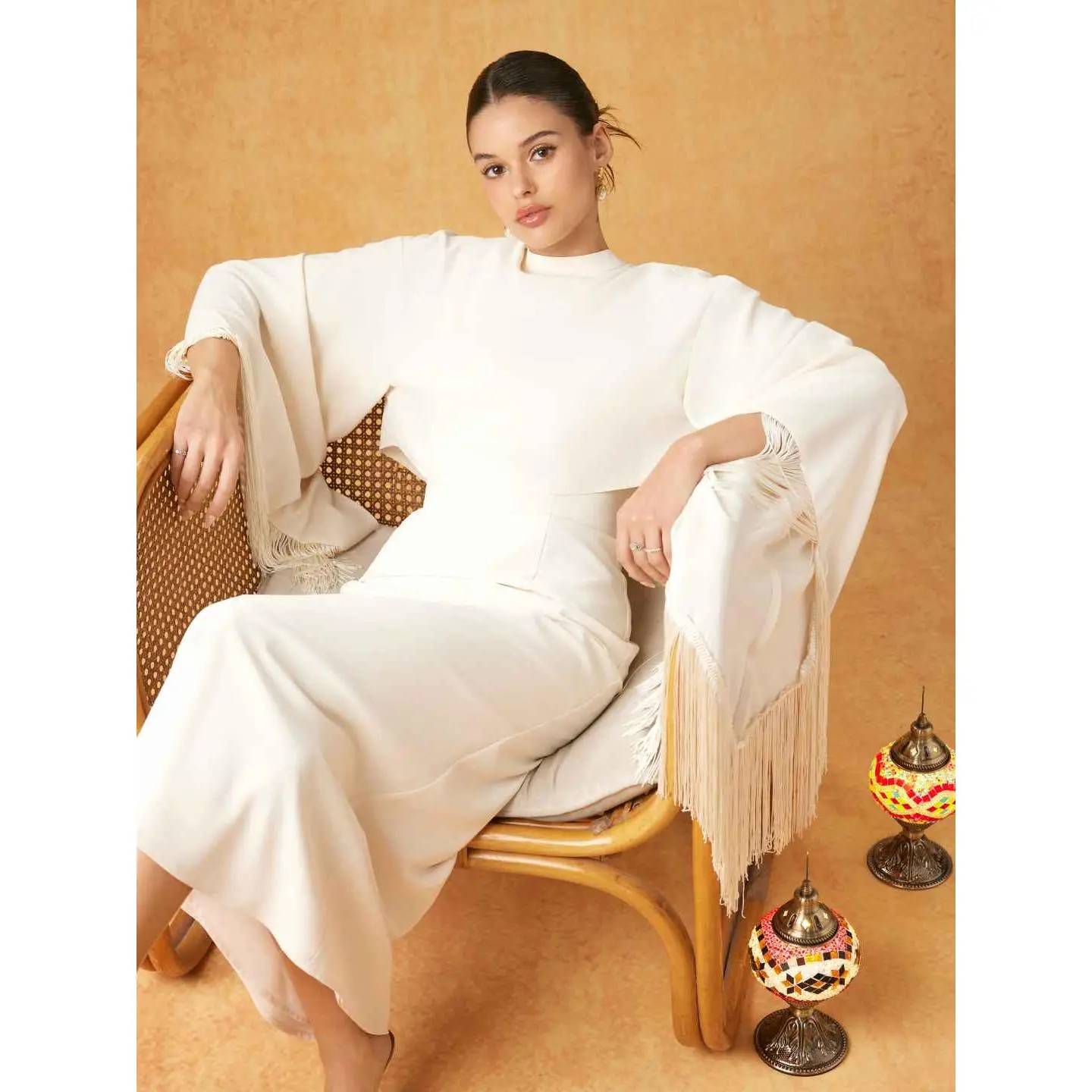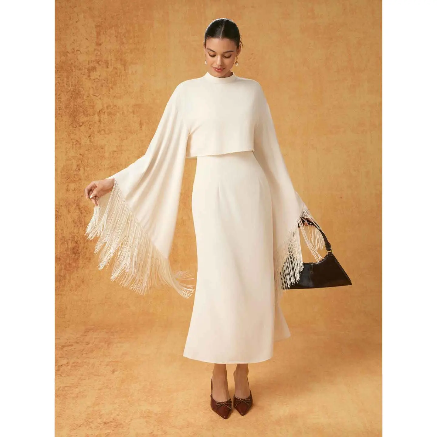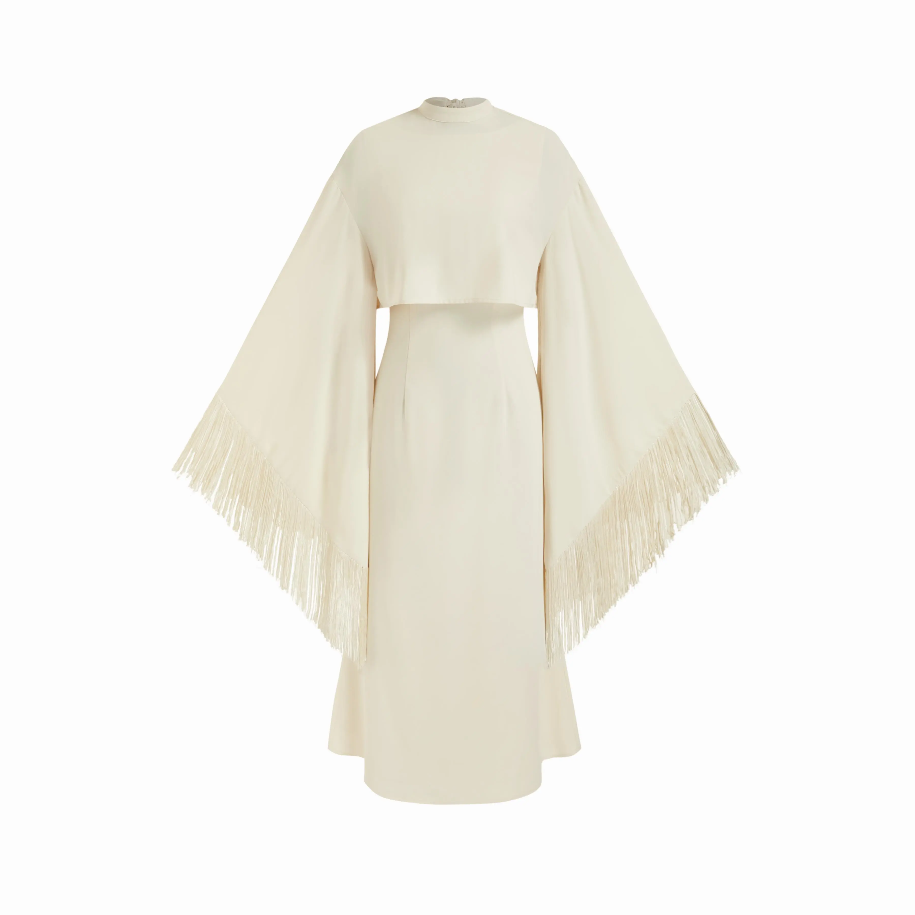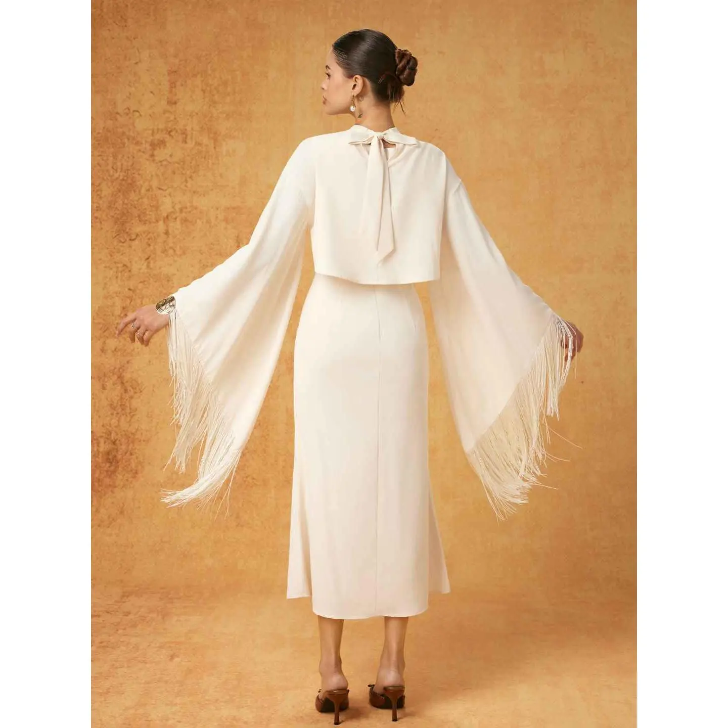 5. Cider High Neck Bell Sleeve Fringed cape overlay & Midi Dress Set