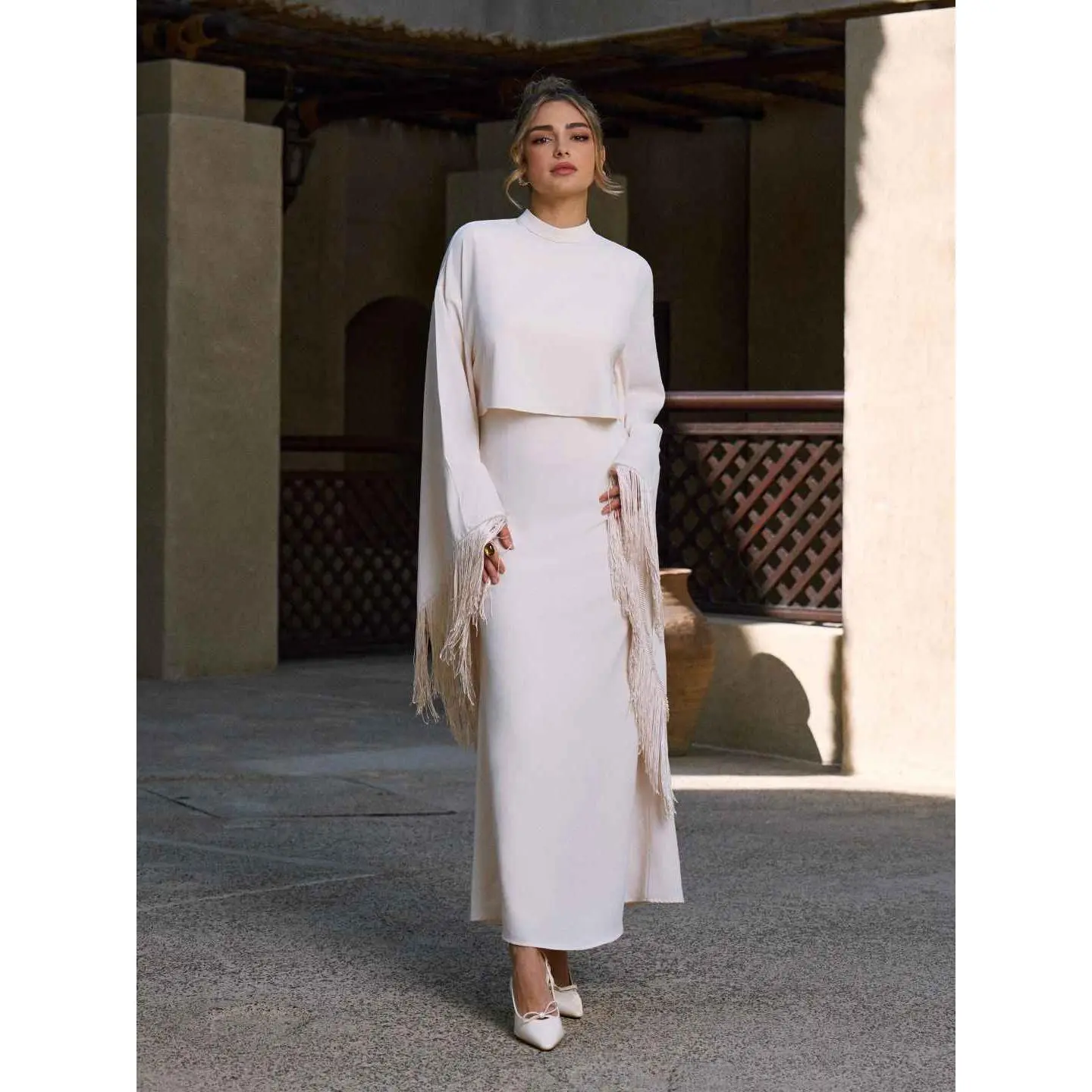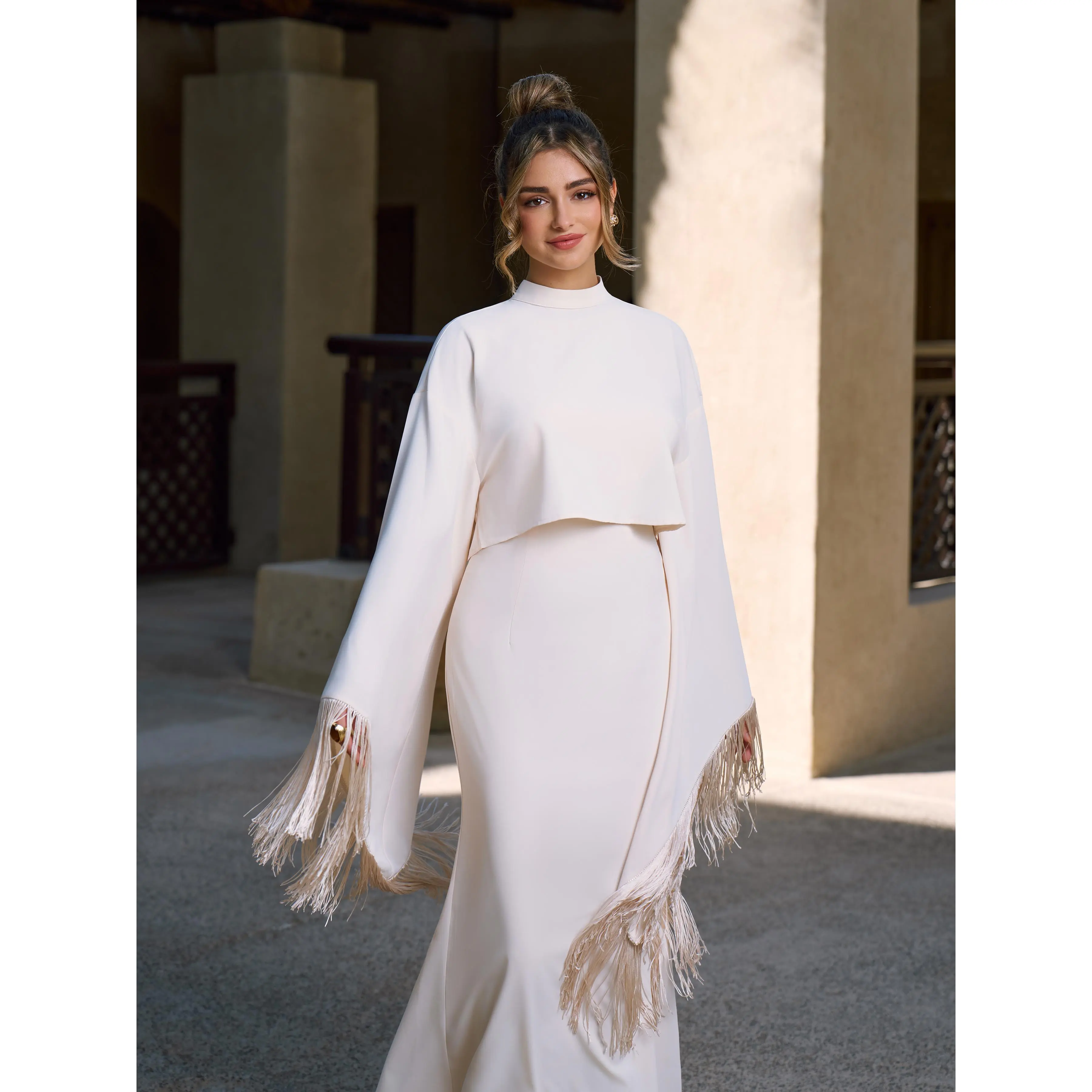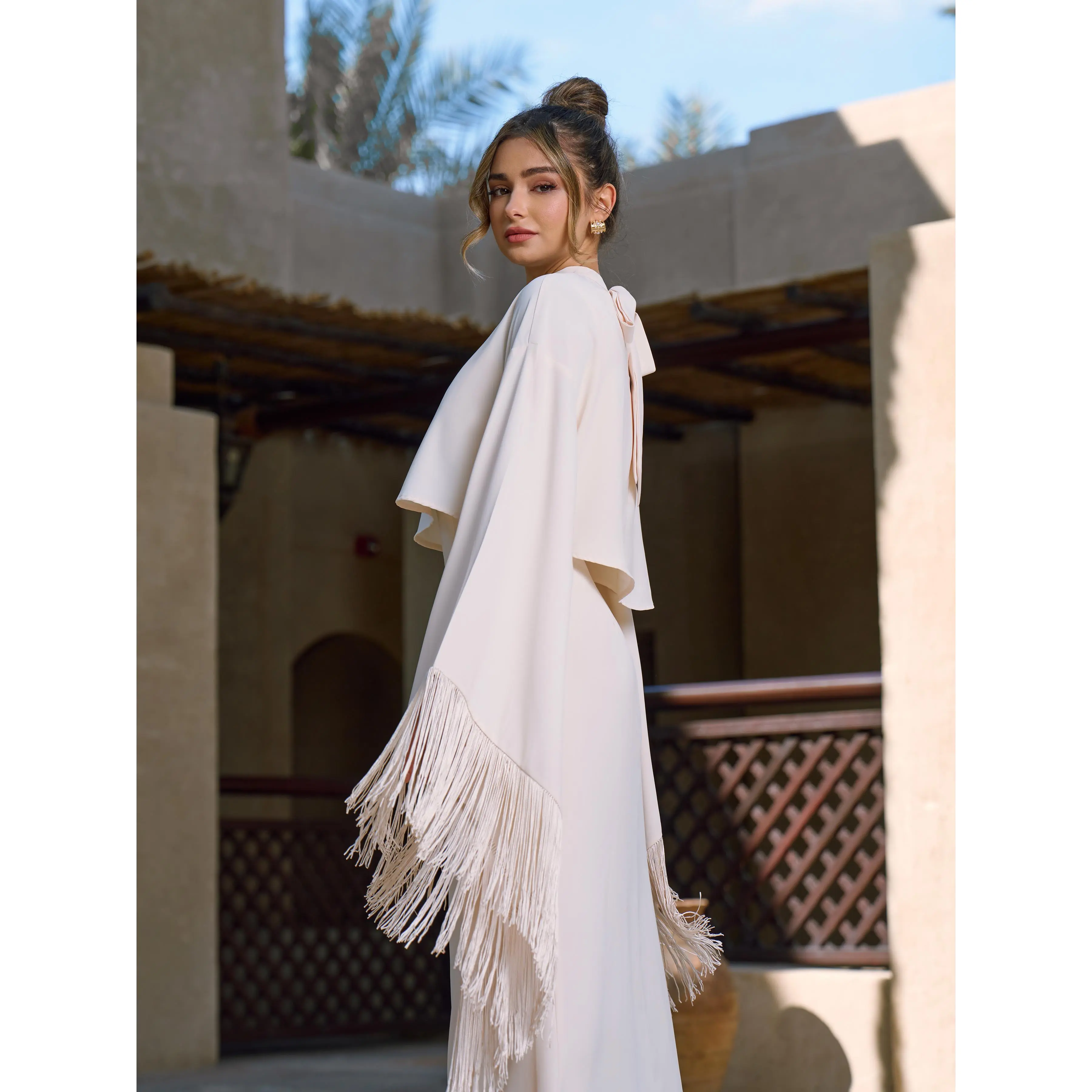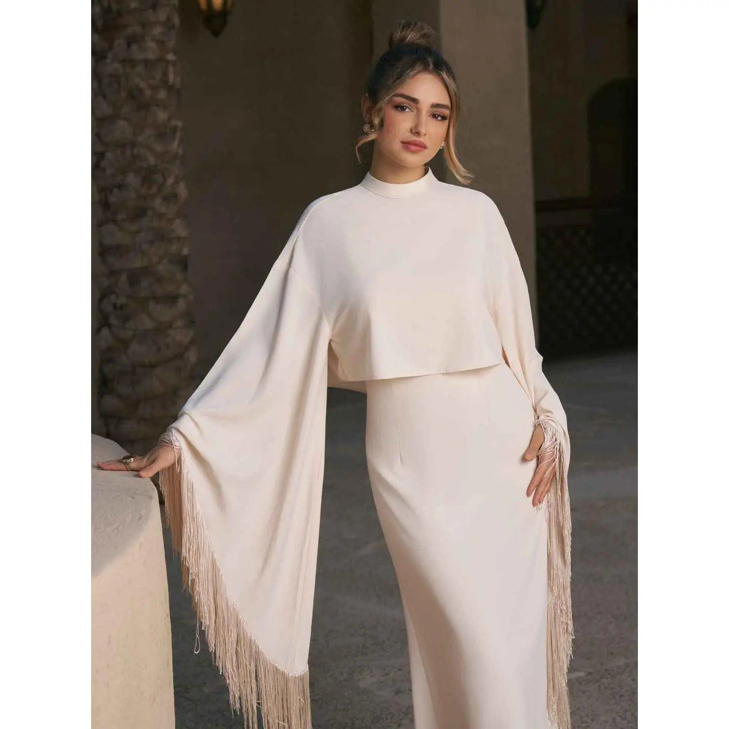 5. Cider High Neck Bell Sleeve Fringed cape overlay & Midi Dress Set