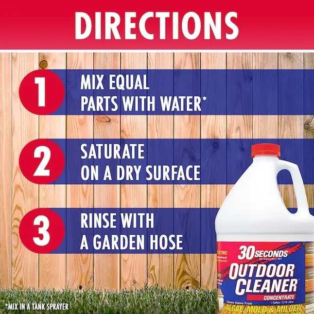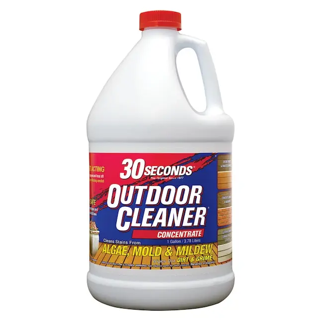 Cleans decks, steps, siding, gutters, fences, pathways, wood, painted surfaces, anything outdoors.30 Seconds outdoor cleaner cleans algae, mold and mildew from anything outdoors. 30 Seconds Outdoor Cleaner can be used on a variety of surfaces; wood decks, concrete driveways, sidewalks, stucco, vinyl siding, brick walls, plastic outdoor furniture, you name it. If it's outdoors and dirty from humidity and wet weather, 30 Seconds can clean it all. Simply spray on and hose off. It's clean when you want it clean.