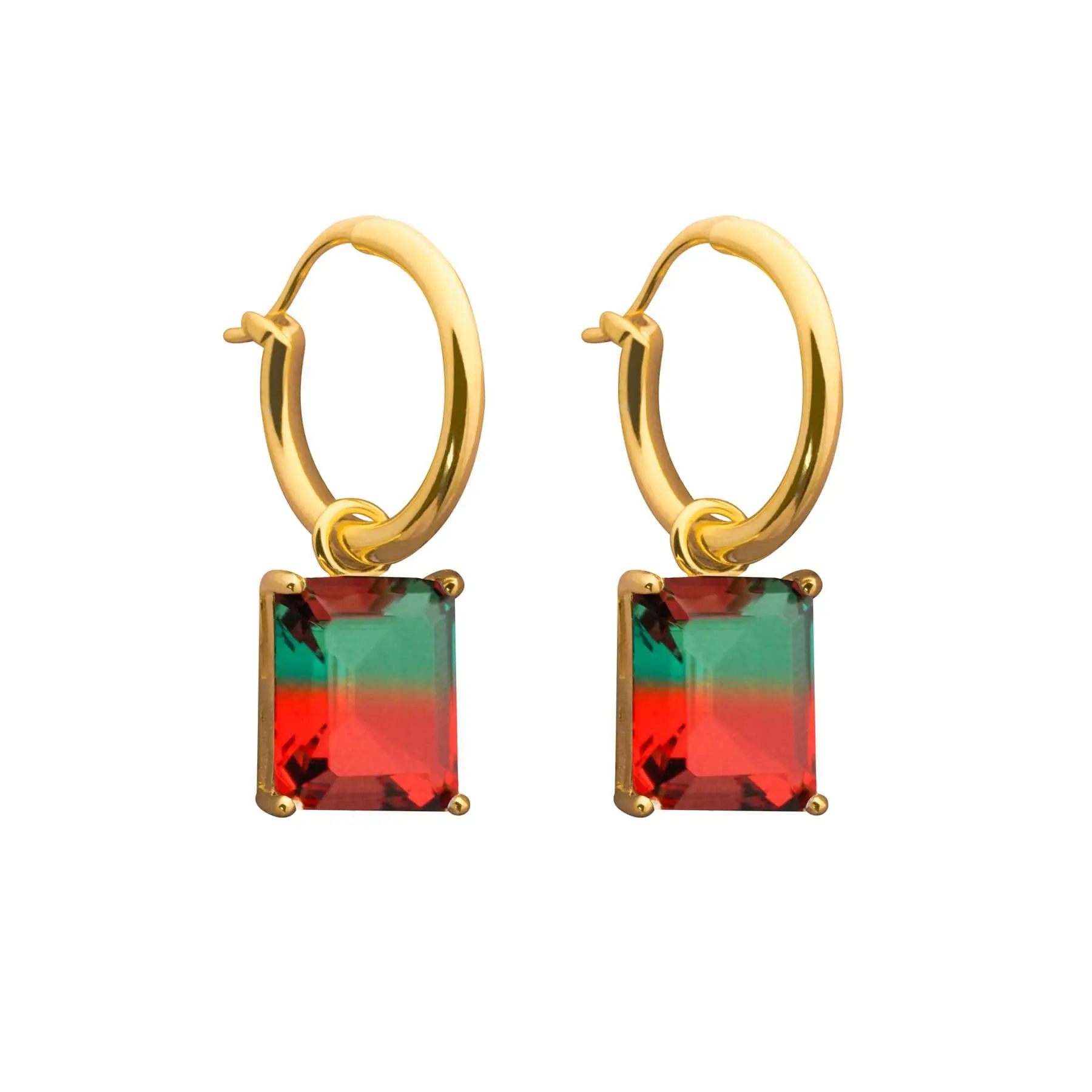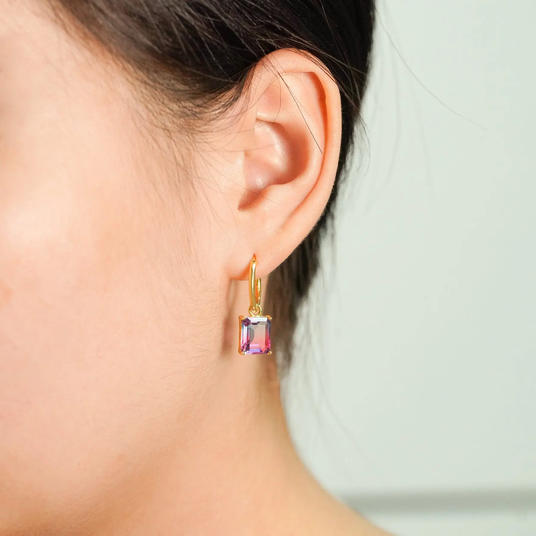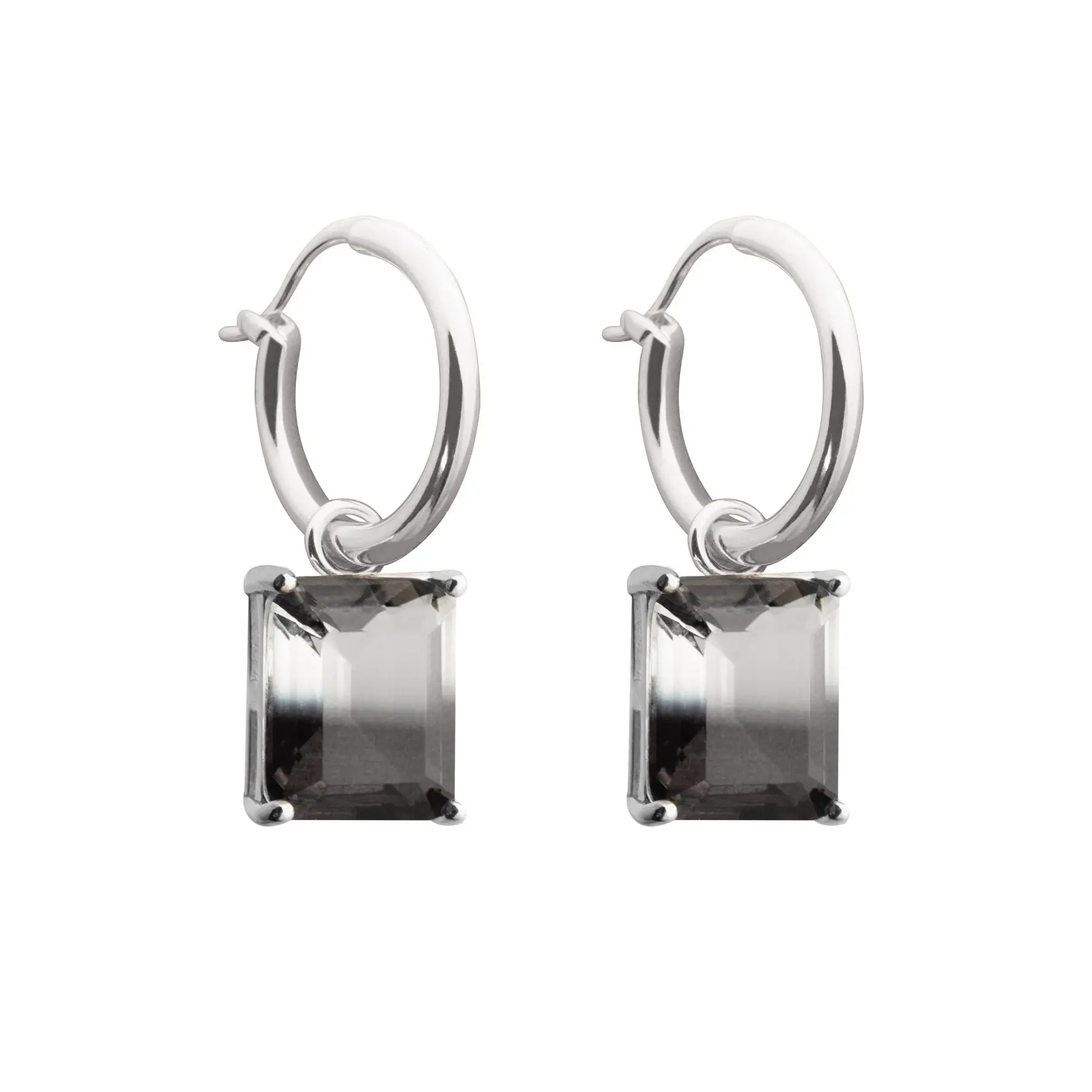 Party Geometry Rectangle CZ 925 Sterling Silver Hoop Earrings