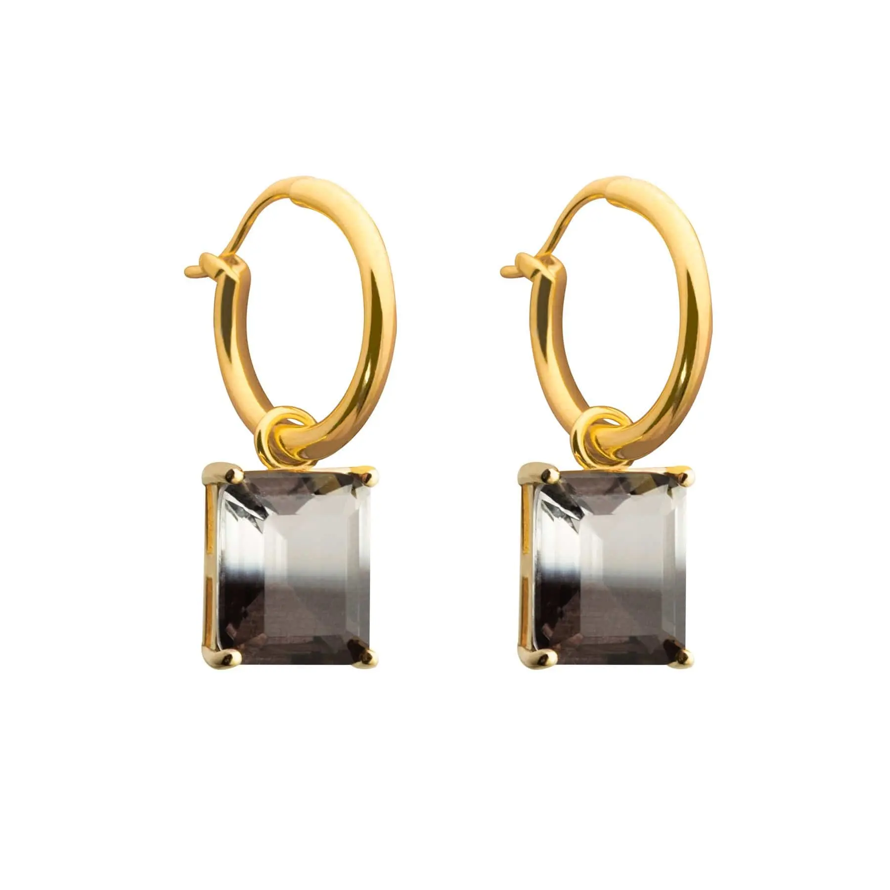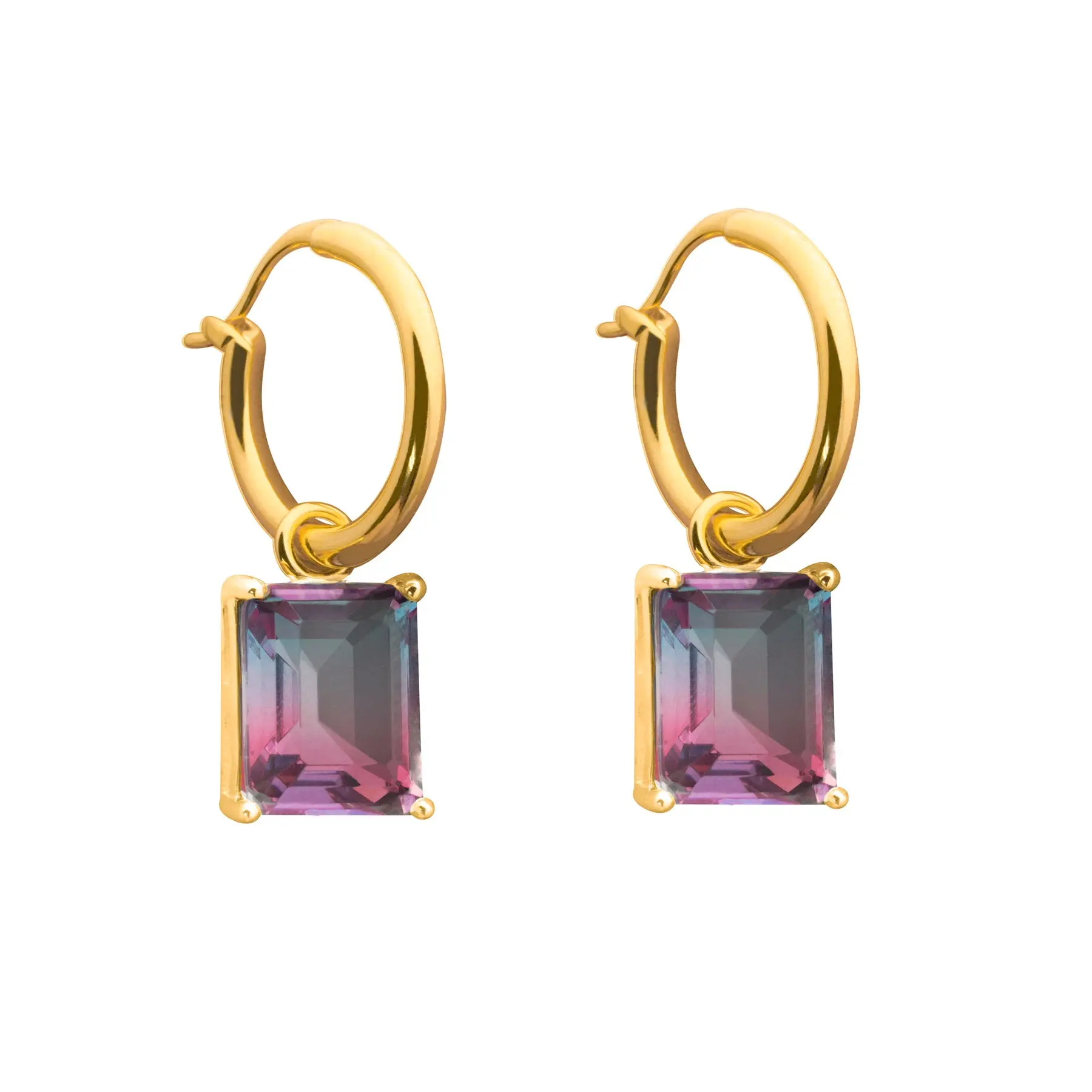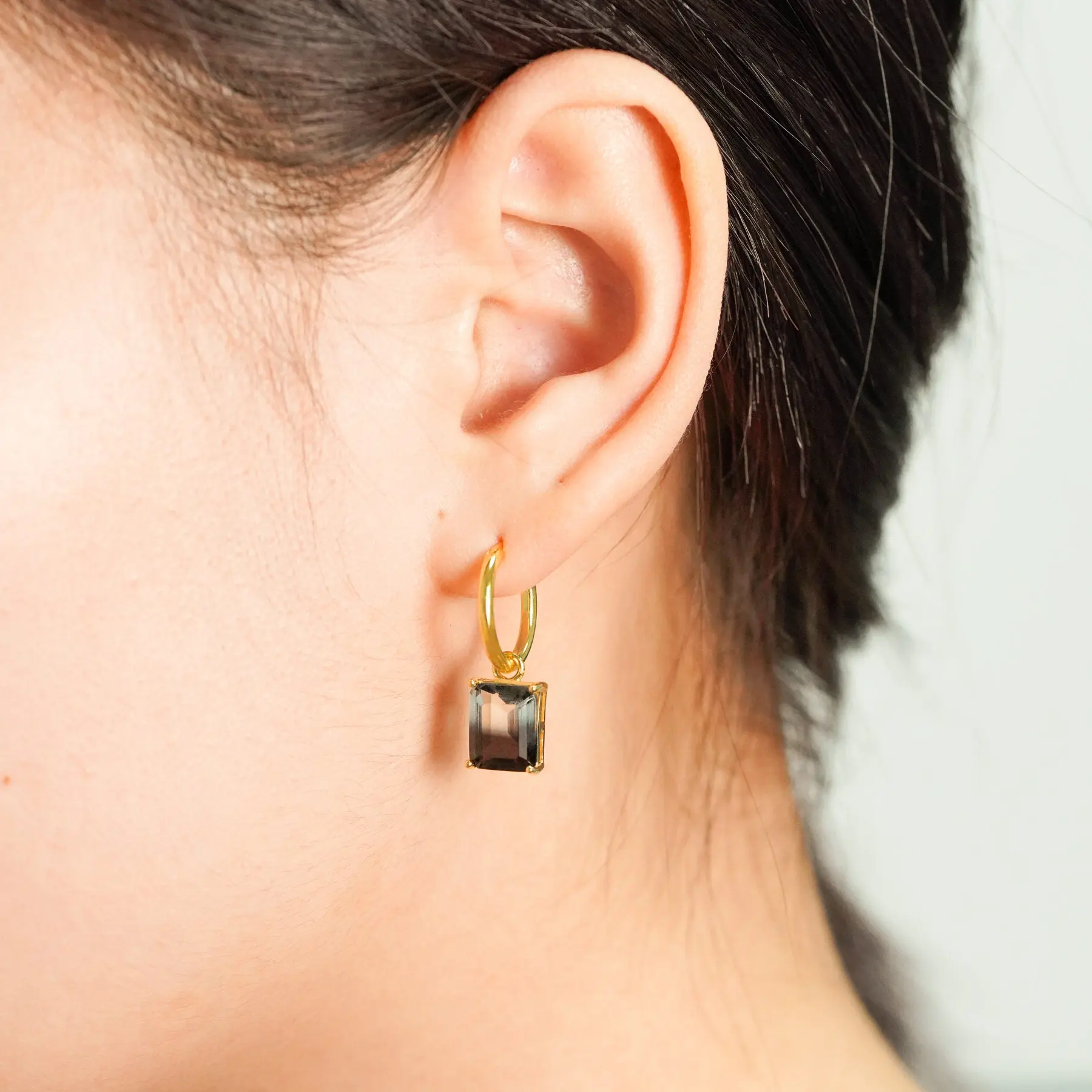 Party Geometry Rectangle CZ 925 Sterling Silver Hoop Earrings