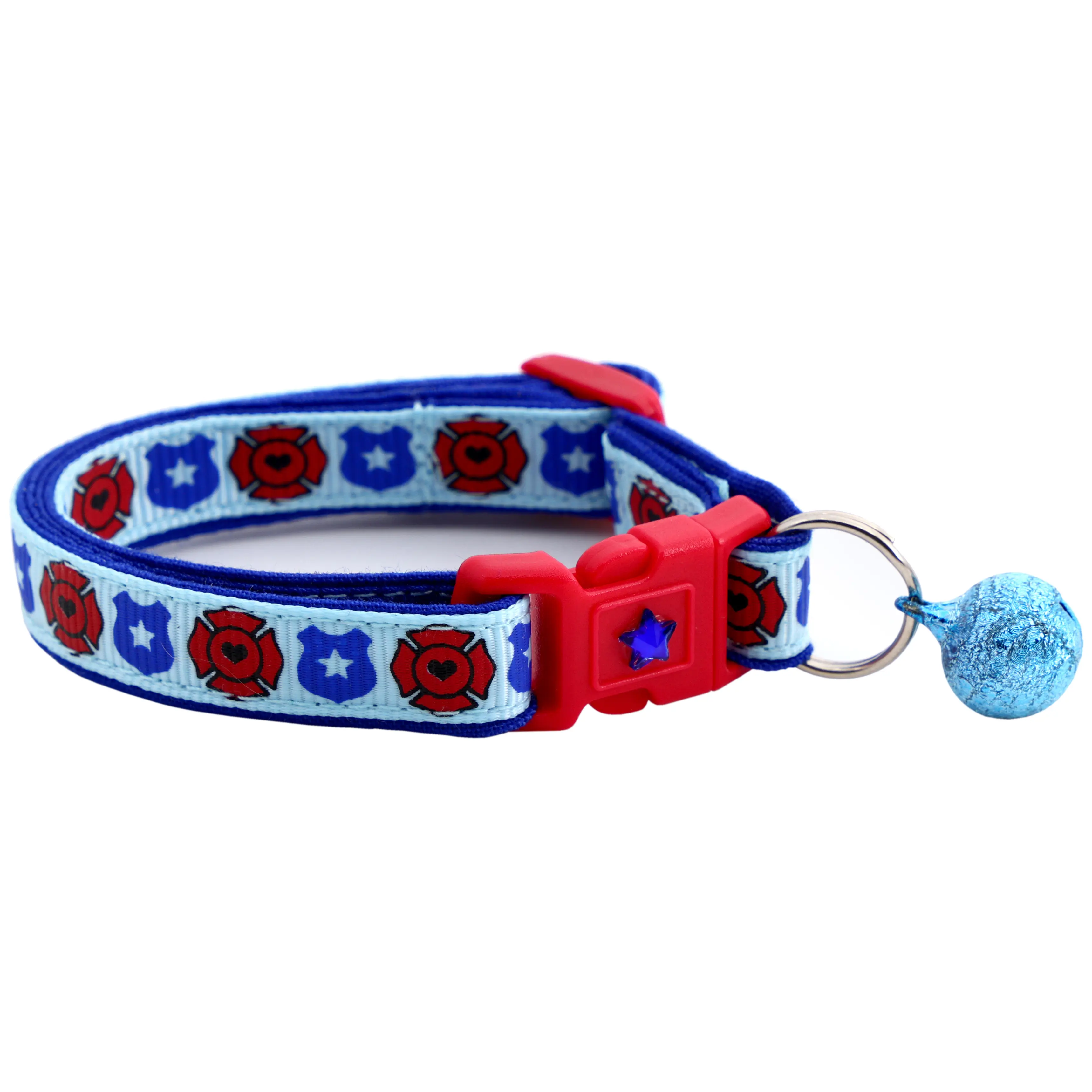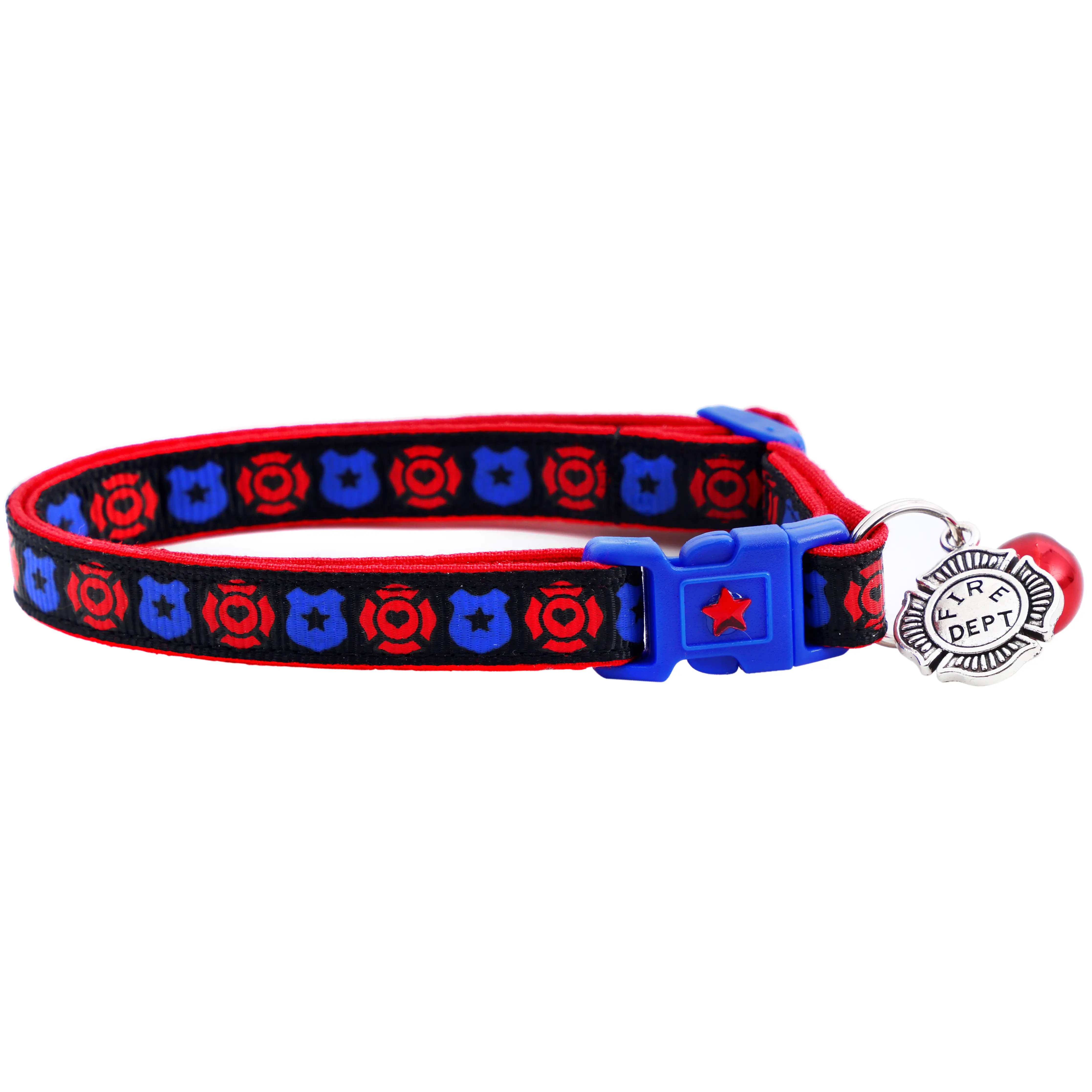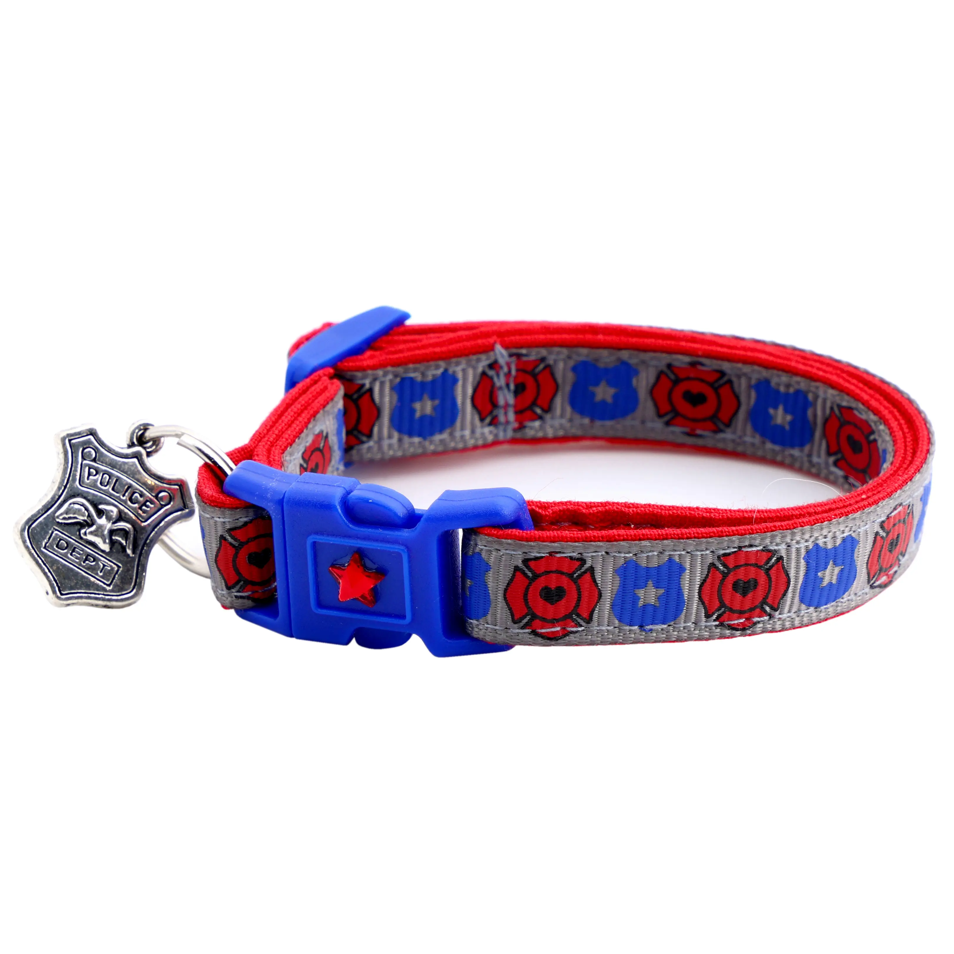Firefighter and Police Breakaway Safety Cat Collar With Jingle Bell & Charm by Pugs2Persians Police Cop Law Enforcement First Responder Badge Fire Fighter