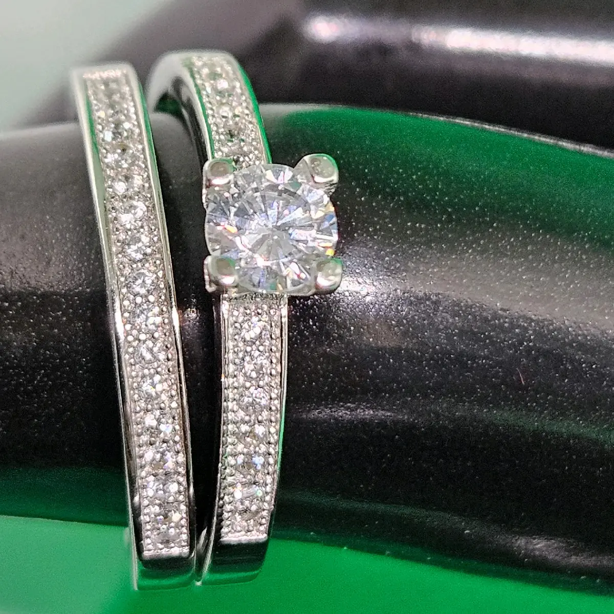 The rings are designed to be worn together as a set, making them a perfect gift for a loved one or a special treat for yourself. The set is perfect for those who appreciate luxury and elegance in their jewelry. The rings are of top quality and are sure to impress anyone who sees them.