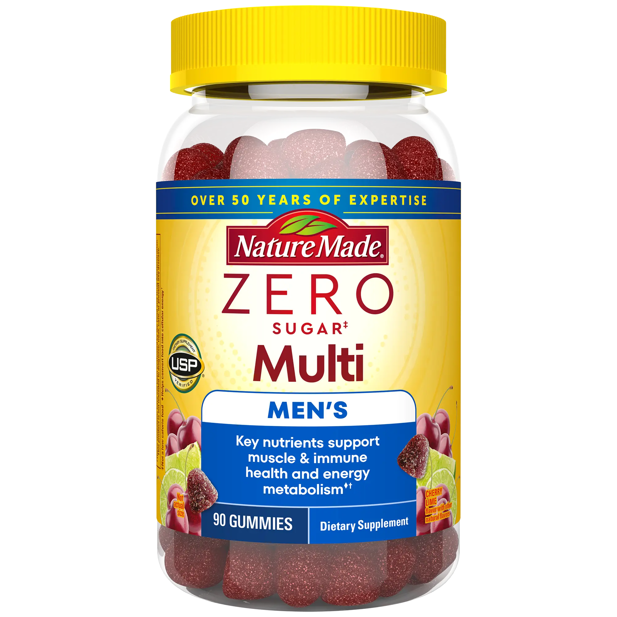 Men's Multivitamin gummies now come in a tasty Zero Sugar‡ form. Two daily gummies provide key nutrients to support your muscle & immune health and energy metabolism◆. Get the same tasty benefits of our regular gummies without the sugar.†