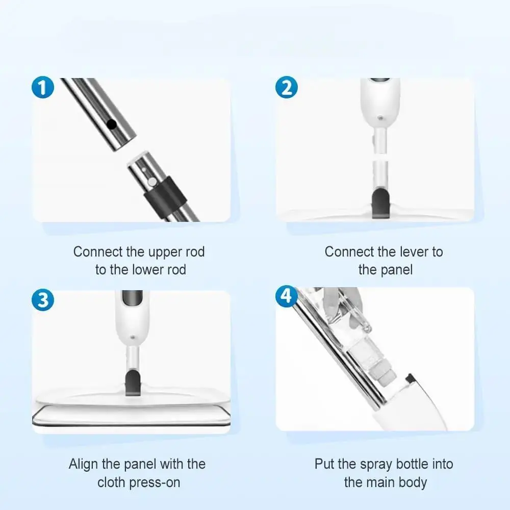 Smart Spray Function 45°Evenly sprays water with one press, no water streaks or residue Superior Cleaning 3 reusable microfiber pads deeply trap dust, hair and tough stains Works on hardwood, tile, laminate and marble floors 360° Swivel Head Reaches under furniture and tight corners easily Lightweight Design Easy one-hand operation, perfect for daily cleaning Perfect ForLiving room hardwoodKitchen tileBathroom marbleBedroom laminate