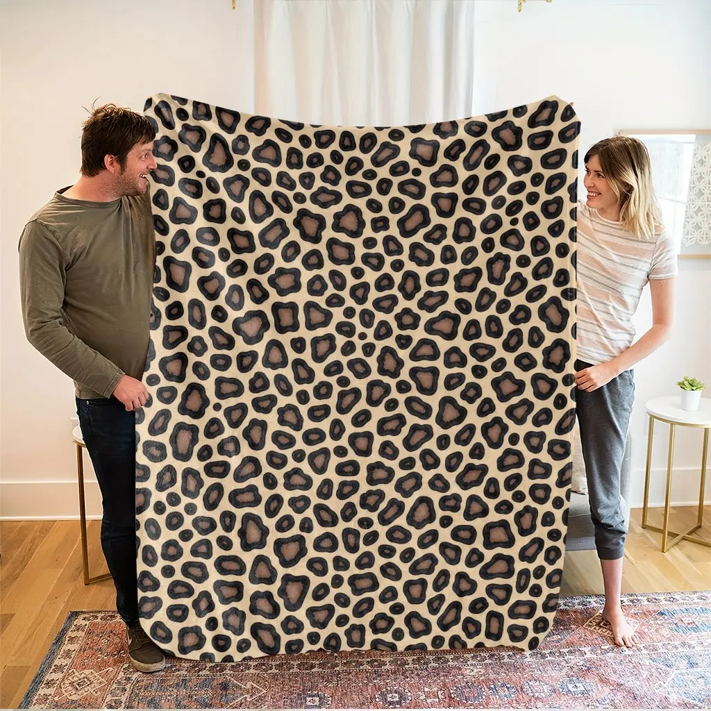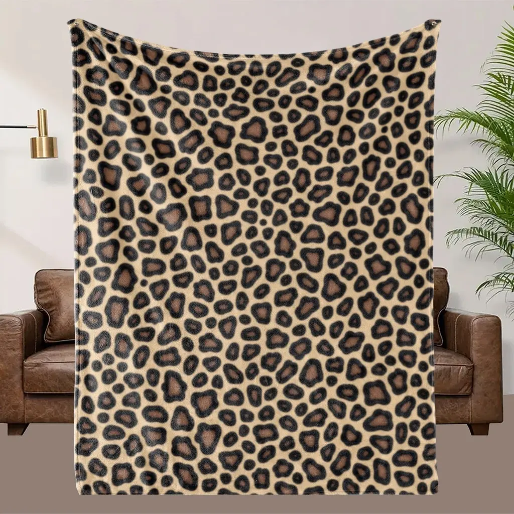1 Comfortable Leopard Print Background Flannel Blanket, Soft Printed Cooling Blanket, 100% Polyester Fiber, Perfect Gift For Family And Friends