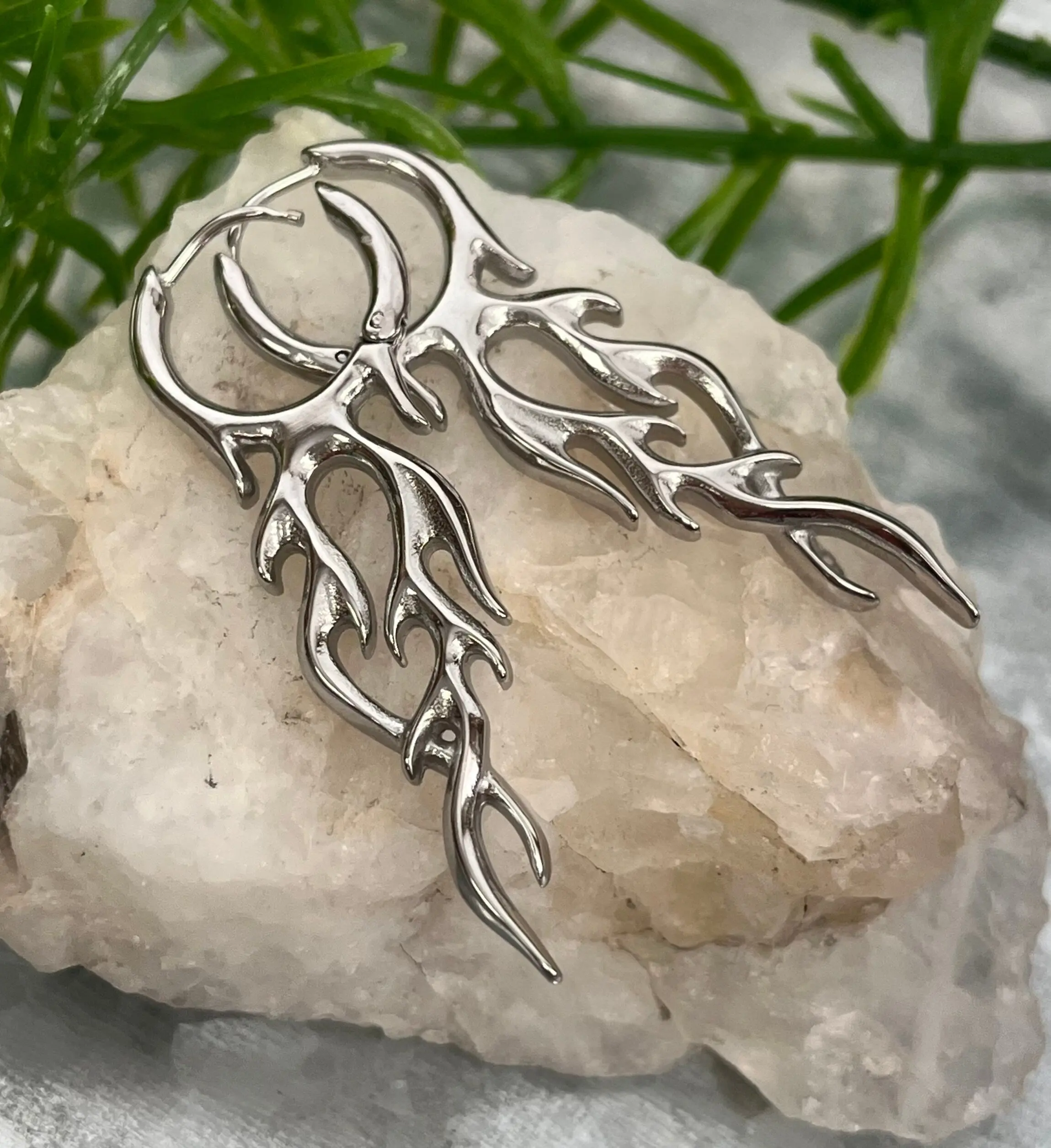 Pair of 18g 316L Stainless Steel Hoop with a Flame Dangle Earrings - Gauges 18g