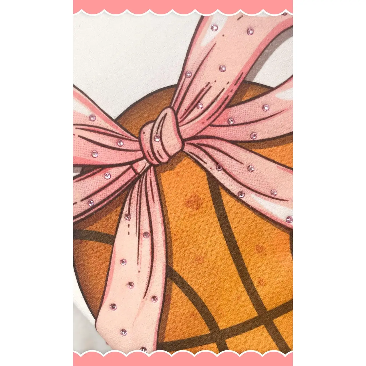 ·This graphic sweatshirt's design features an illustration of a basketball with a big pink ribbon bow on top. Pink rhinestones are applied to the bow portion of the design. This top is perfect for basketball season!