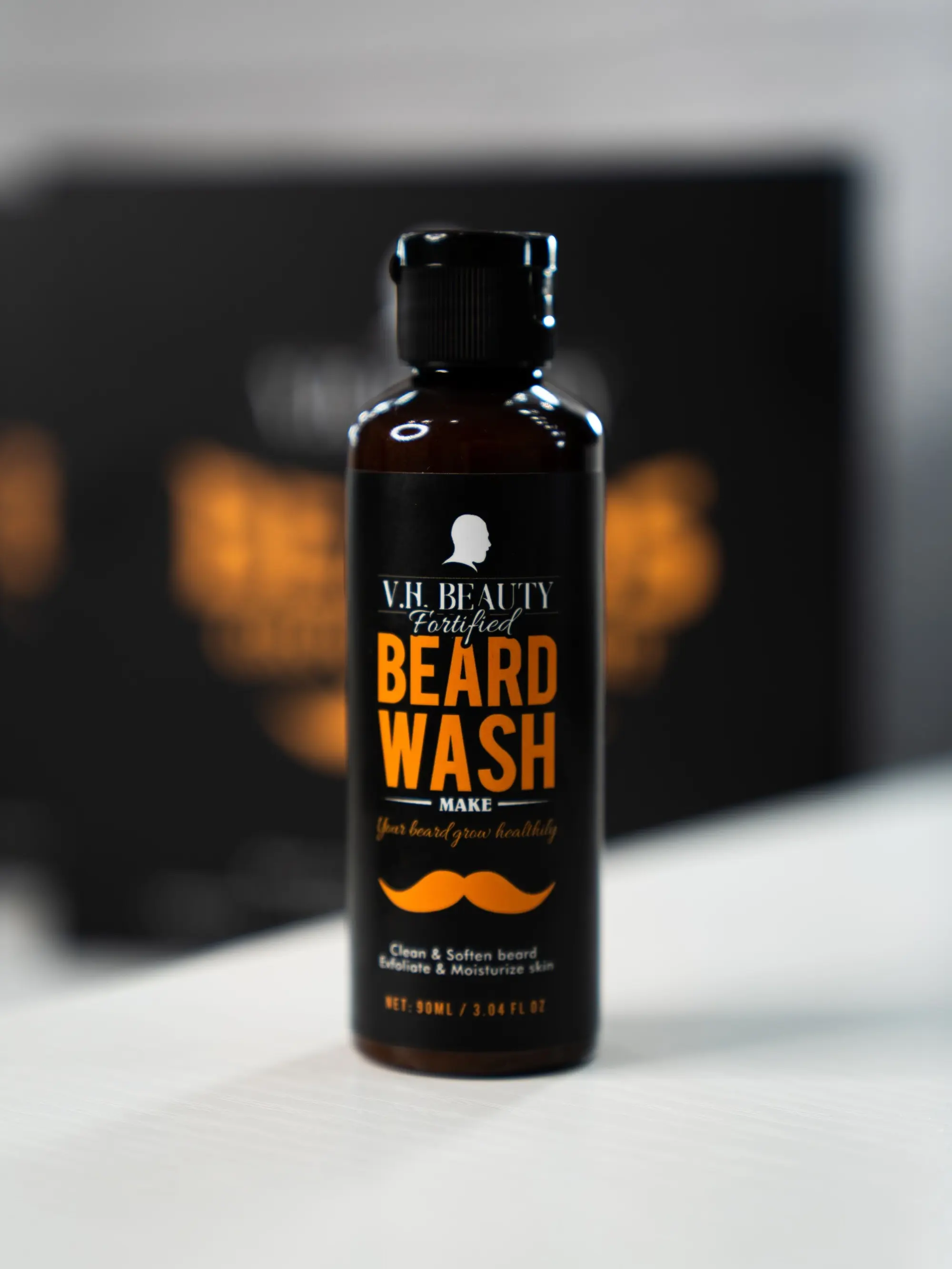 Next, our Fortified Beard Wash. Designed specifically for men, this beard shampoo (shampoo para barba de hombre) is a game-changer in cleansing and nourishing your facial hair. Infused with a blend of potent yet gentle cleansing agents, this beard wash for men effectively eliminates dirt, grime, and excess oil without compromising your beard's natural oils. Crafted to cater to the unique needs of men's facial hair, our beard cleaner ensures your beard remains clean, refreshed, and primed for whatever the day throws at you. Whether you're sporting a full beard or a close shave, our best beard shampoo is the essential companion to maintain your look. And with its specialized formulation, also a great beard wash for black men, you can trust our mens beard shampoo to deliver optimal results every time. Elevate your grooming game with the Fortified Beard Wash, the cornerstone of any discerning man's routine.