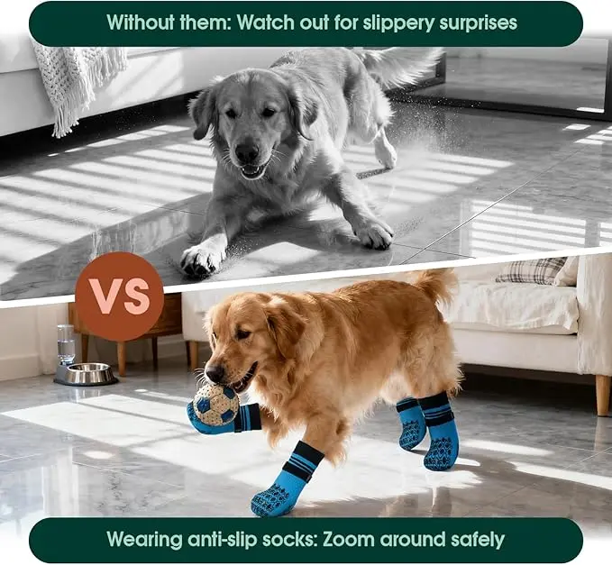 ·Anti-Slip Design for Indoor & Outdoor Safety: These non slip dog socks for hardwood floors are designed with double-sided rubber grippers to enhance traction and prevent slipping on tile, laminate, or hardwood surfaces. Perfect dog grippy socks for senior dogs with mobility issues or recovering from injuries