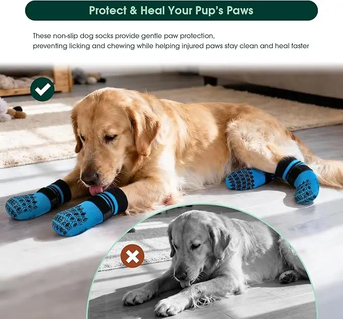 ·Prevents Licking & Protects Sensitive Paws: Our socks act as effective dog socks to prevent licking paws, stopping constant chewing and irritation. Ideal for dogs with allergies, wounds, or bandages, these socks serve as breathable dog paw protectors and help speed up recovery while minimizing stress