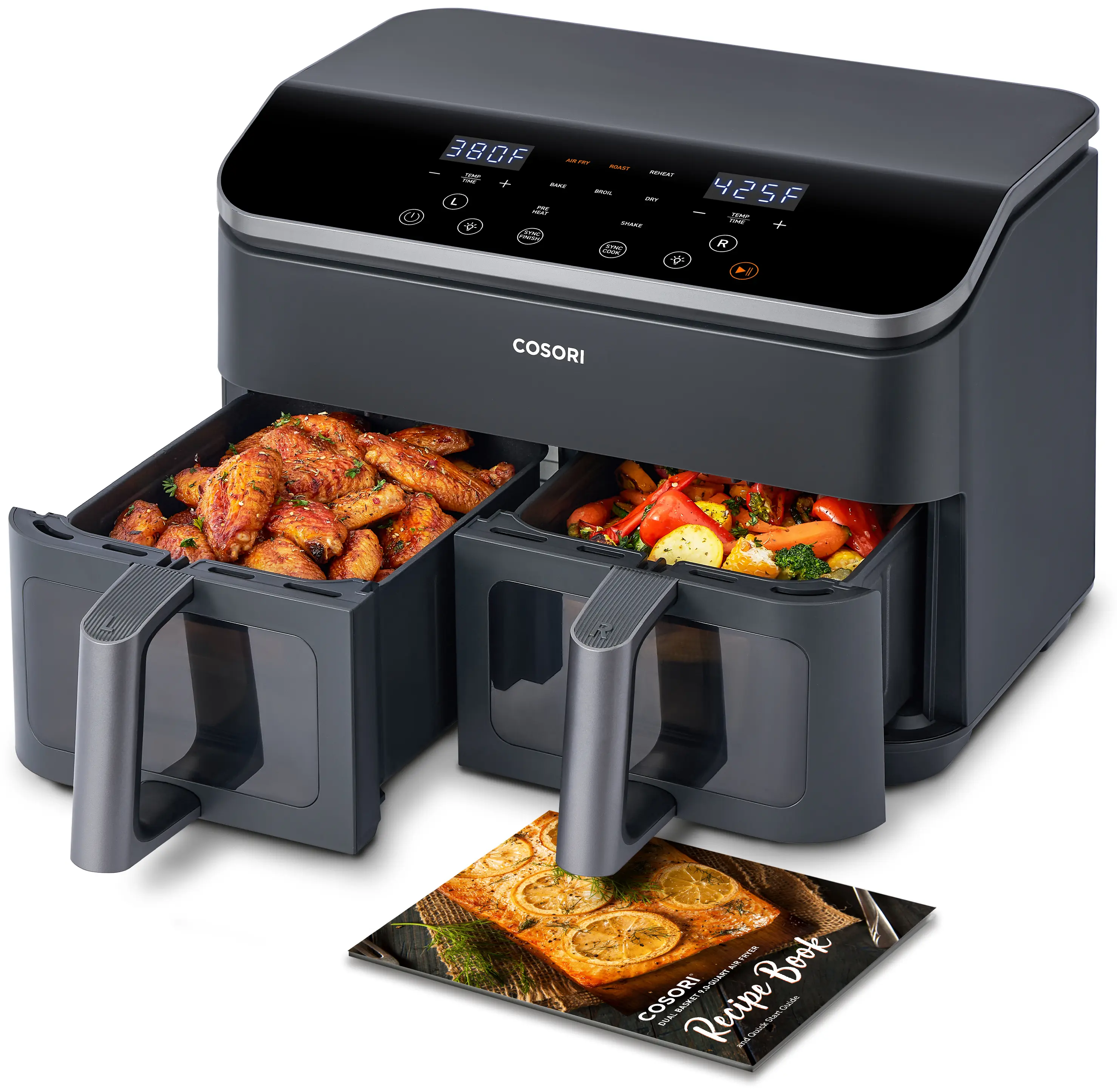 ·Sync Finish = Dinner Ready Together: Cook different foods with different settings, and Sync Finish times both baskets to complete at the same moment for a fresh, warm meal together.