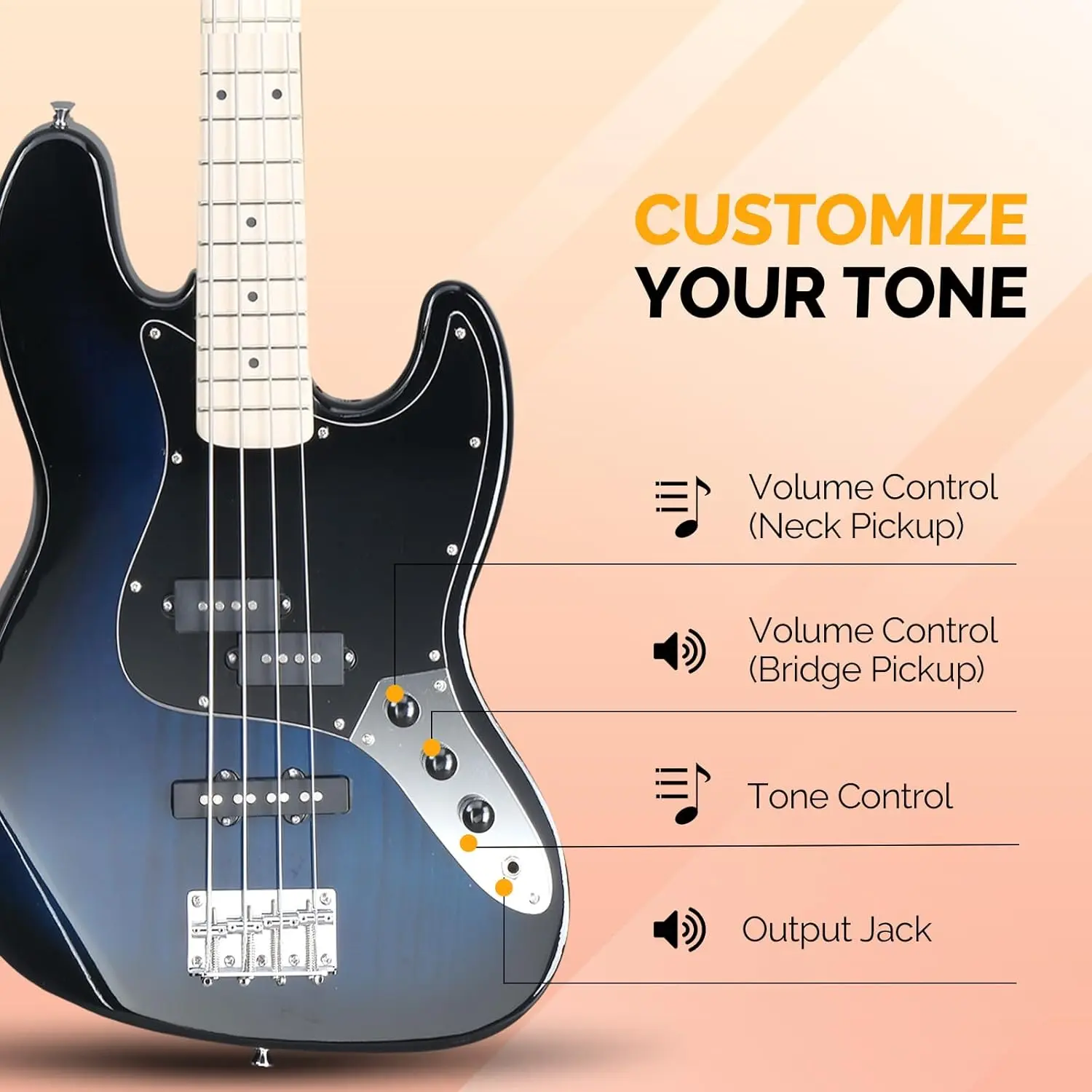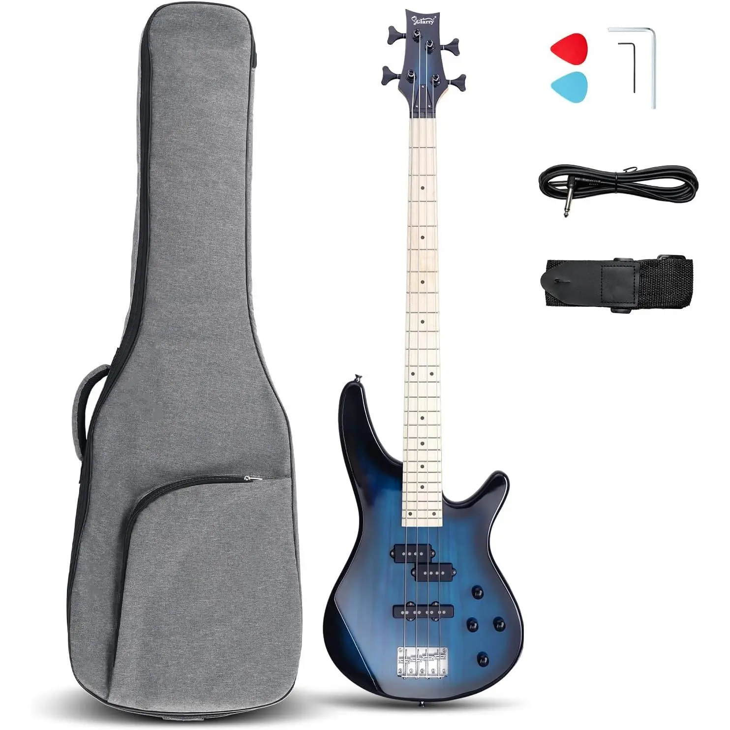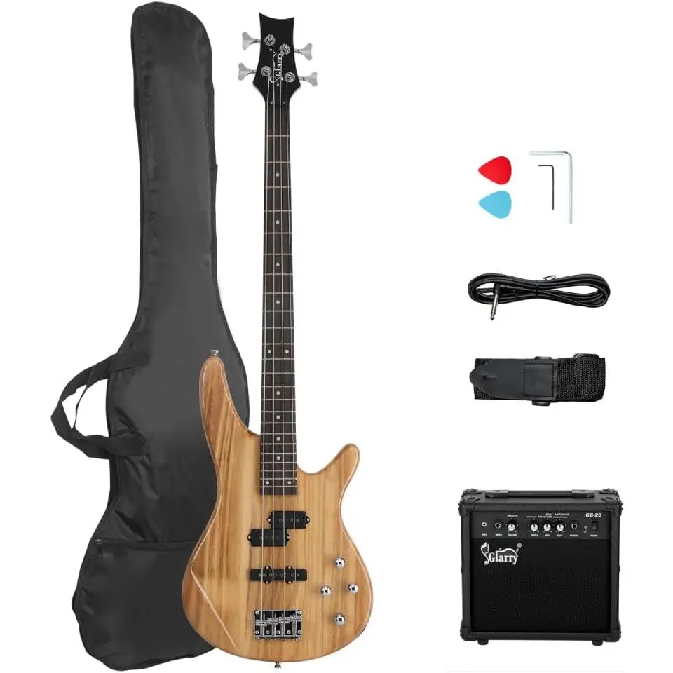 You can play your bass immediately after opening a package; Come with 1× Electric Bass Guitar, 1× Portable Guitar Bag, 1× Shoulder Strap, 1× Bass Pick, 1× Amp Cord