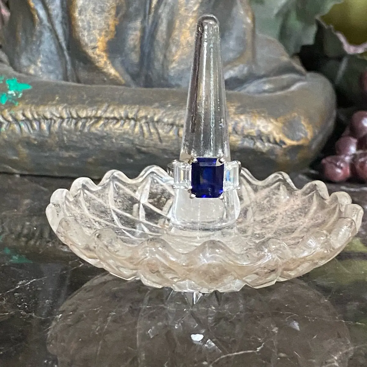 silver ring with blue stone