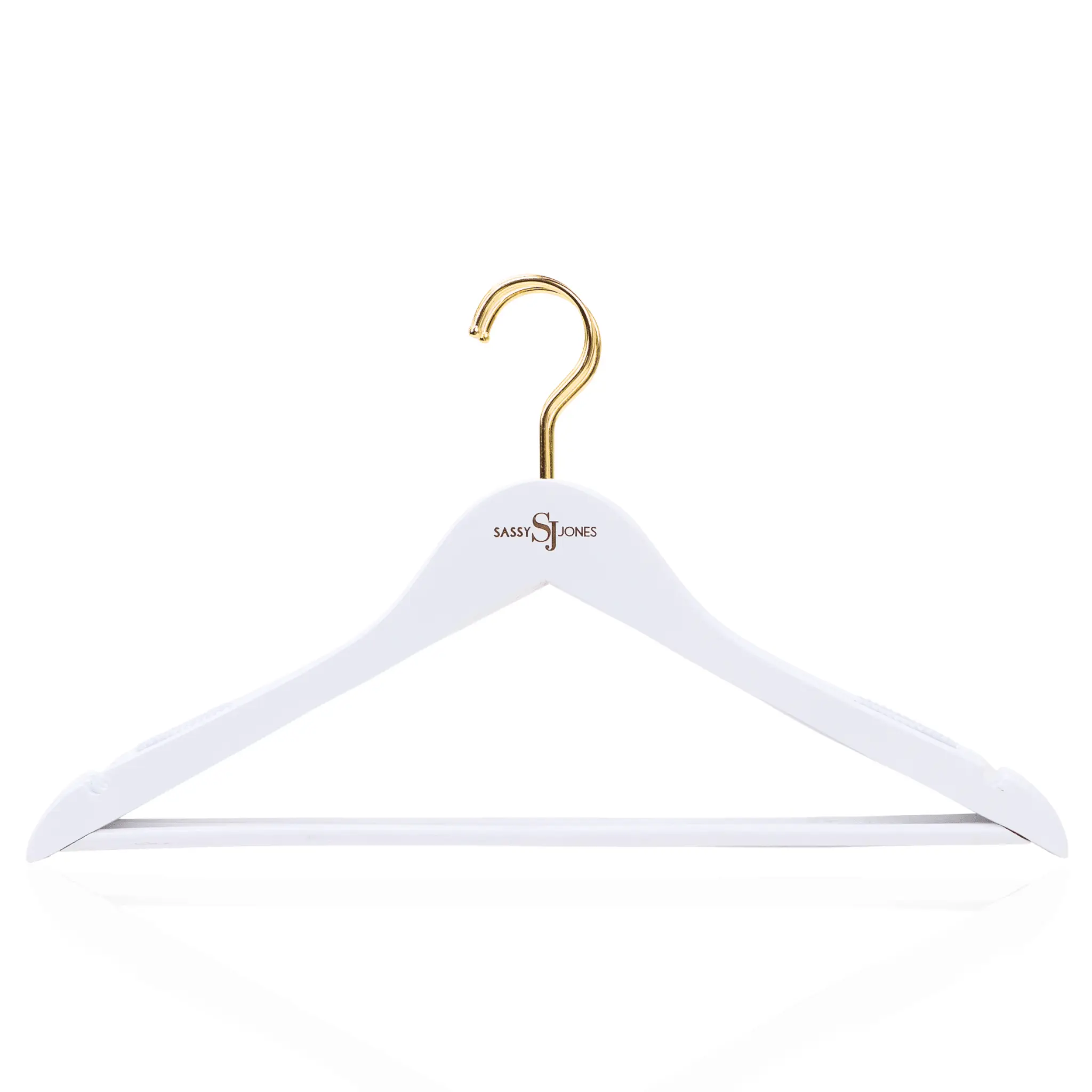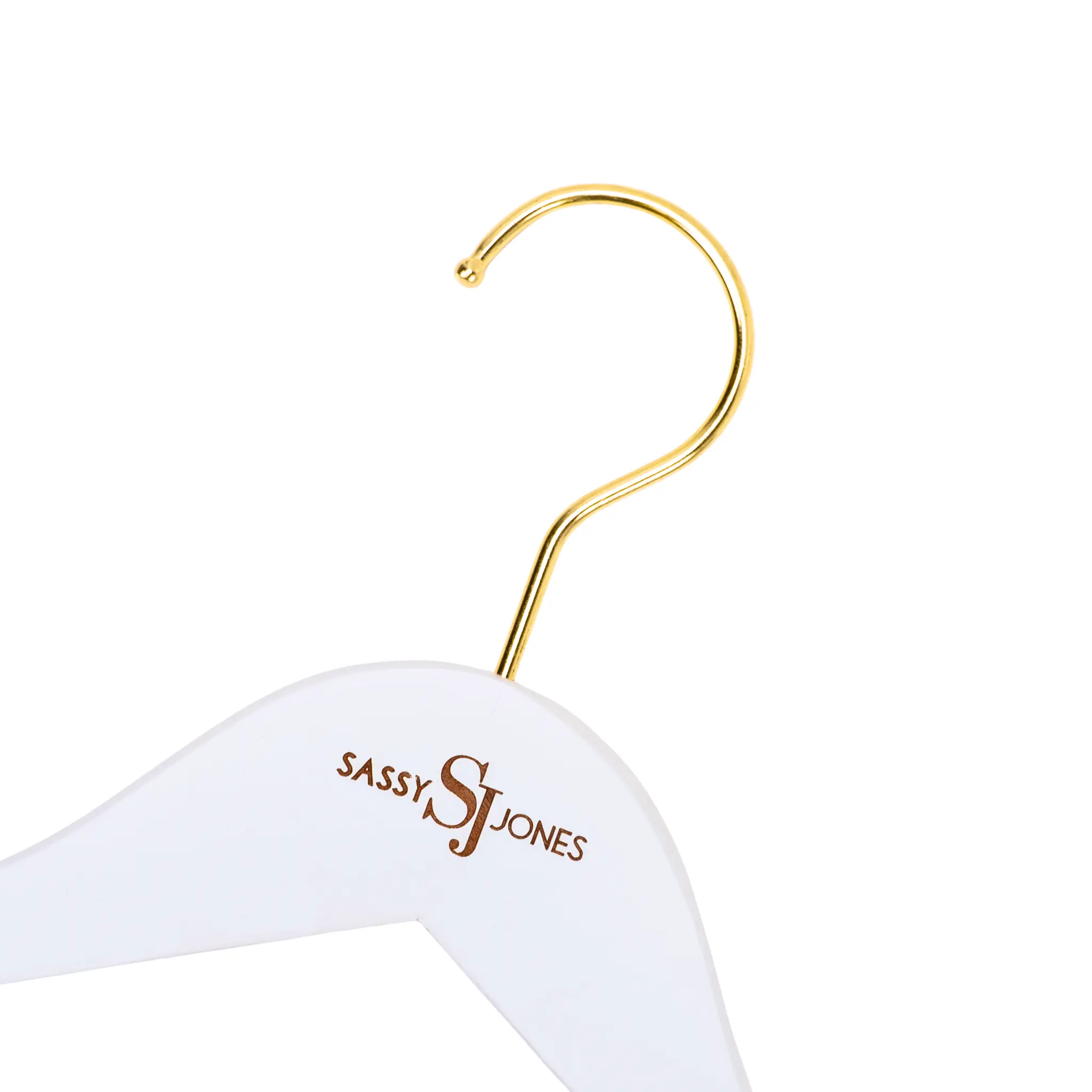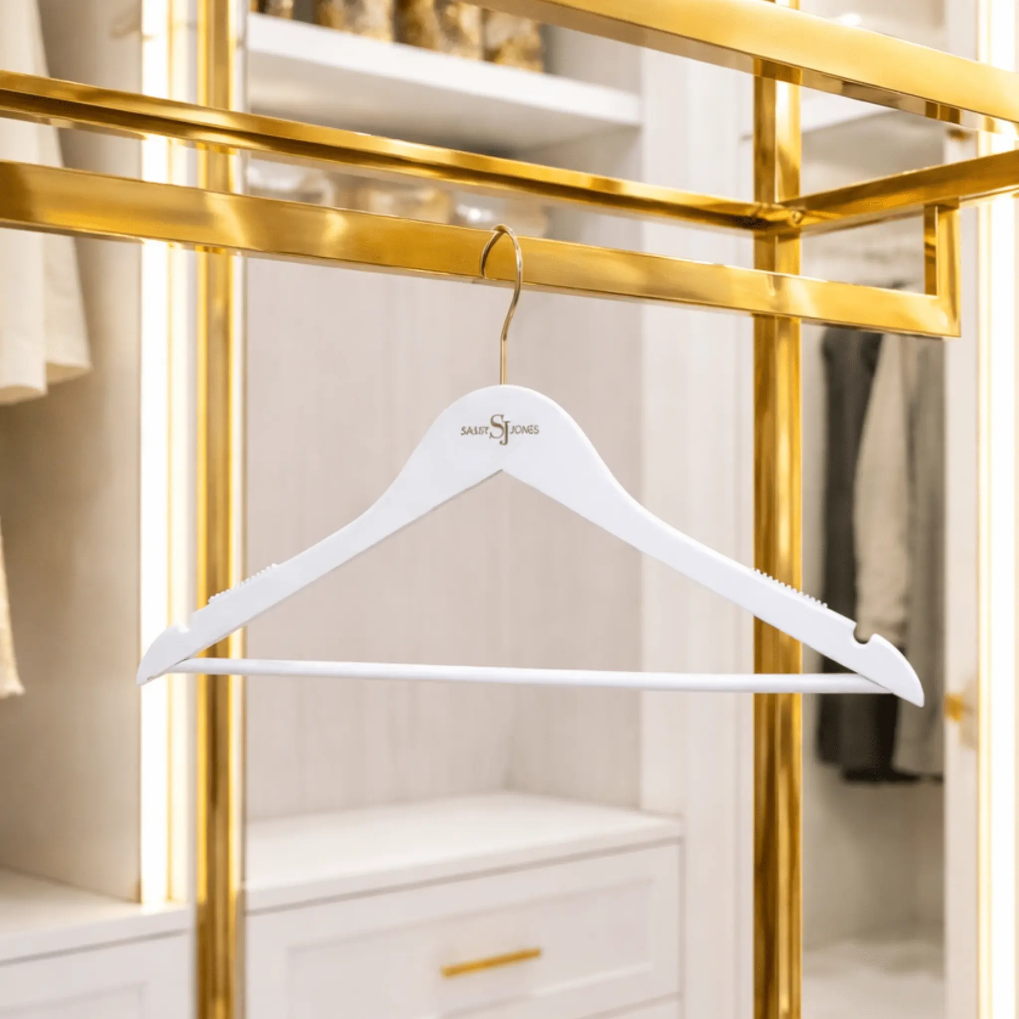 The Sassy Shirt Hangers – 4 Piece Set brings elevated style and effortless organization to your closet. Designed with a sleek white finish and elegant gold hooks, these premium hangers transform everyday storage into a polished, boutique-worthy display.