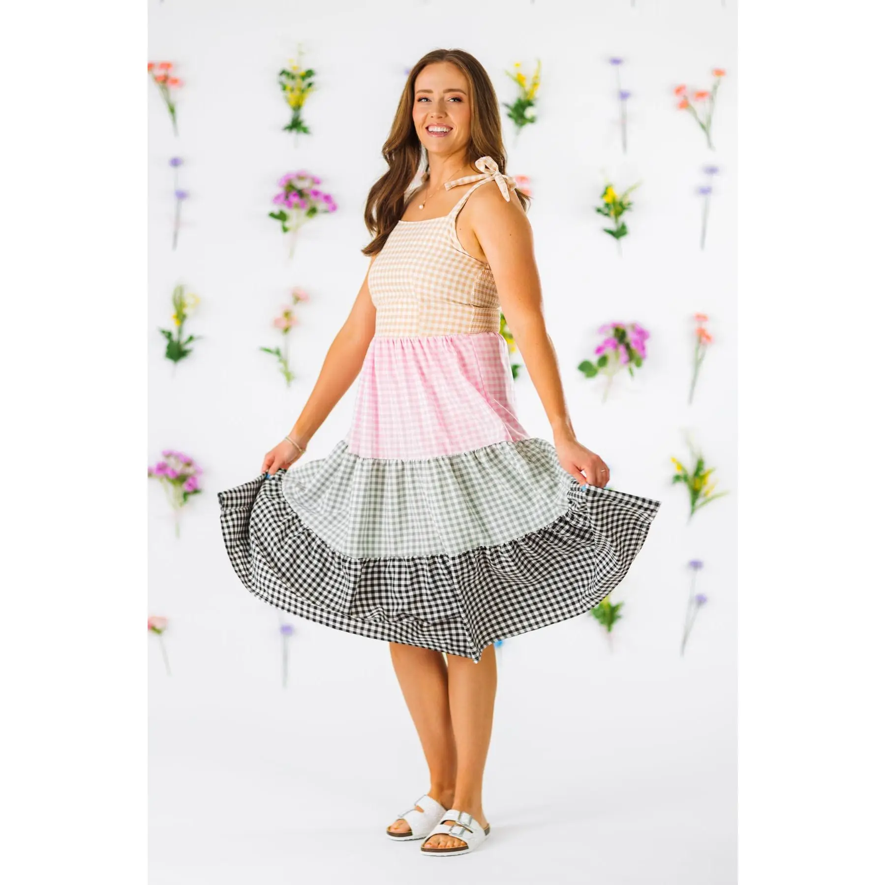 These Pastel Gingham Dress features feminine tie strap and a multicolor gingham design. This dress is made from soft and breathable fabric that will keep her comfy during all adventures. The flowy style knee-length design offers a feminine fit, while the gingham pattern adds a trendy touch. She can pair it with some SIP bows & our sandals for the perfect look! Little ones love to match their mommy!
