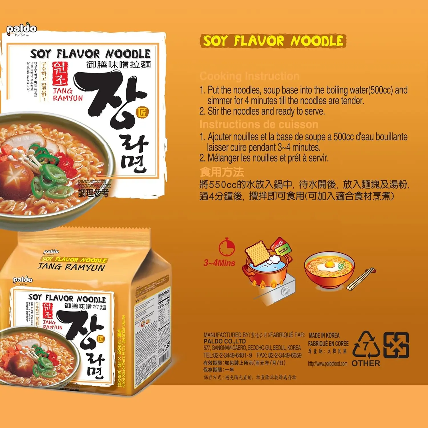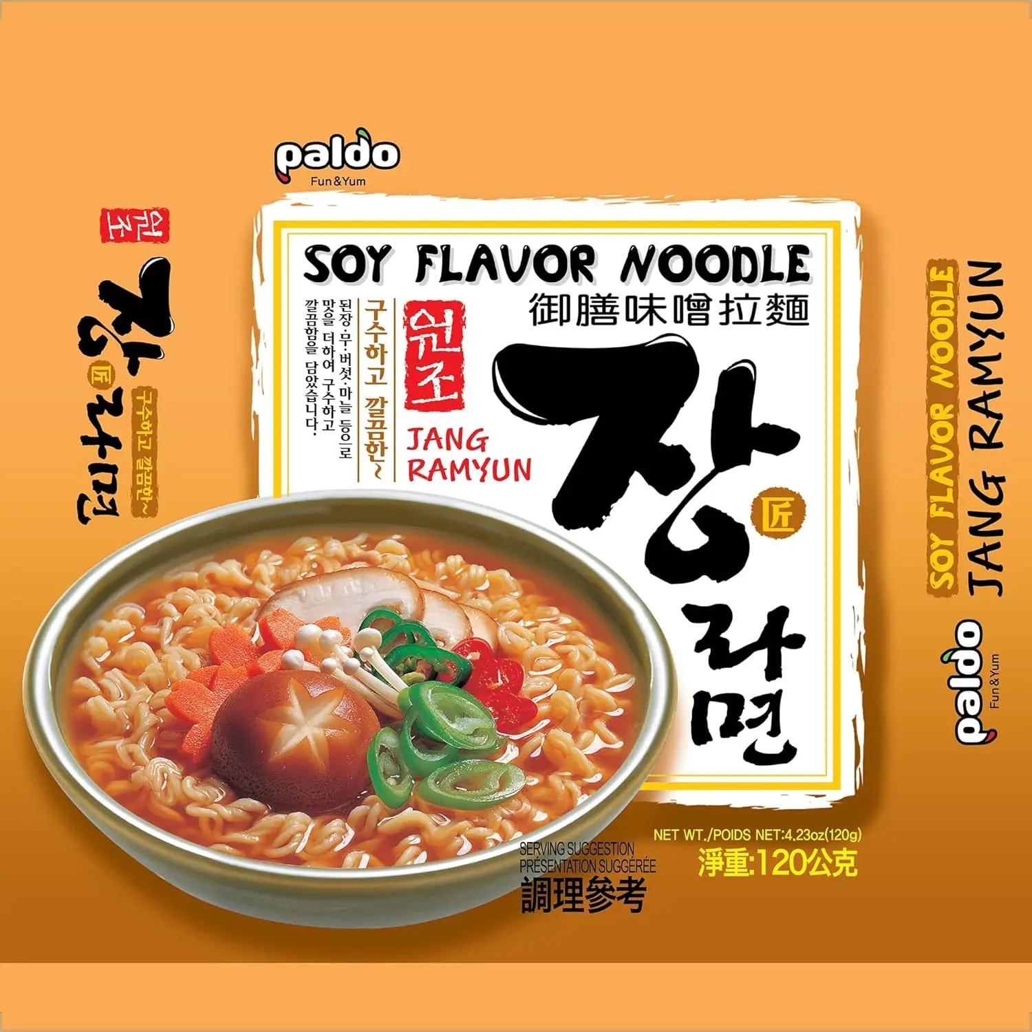 Meet Paldo Fun & Yum Jang Ramen (Mild) — a Korean instant noodle featuring a rich soy-based savory broth and satisfyingly chewy noodles.