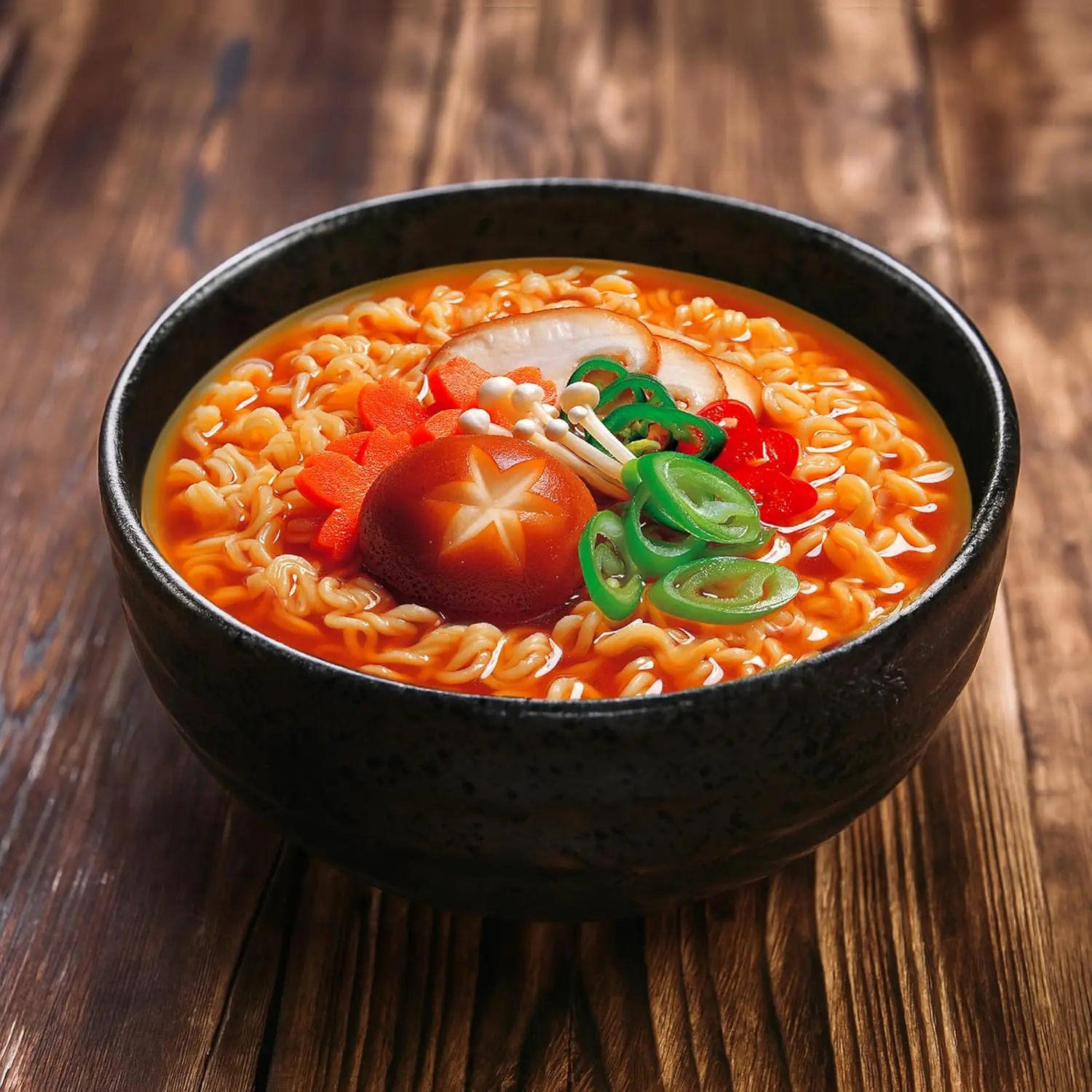 Want to upgrade your bowl? Add sliced pork, green onions, mushrooms, tofu, or a soft-boiled egg to create an even richer Korean ramen experience.