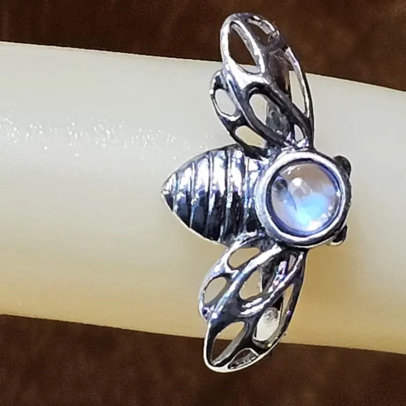 Bee Natural Rainbow moonstone Sterling Silver mark 925 ring sizes 4-12 marquise stone 4 mm gift box included