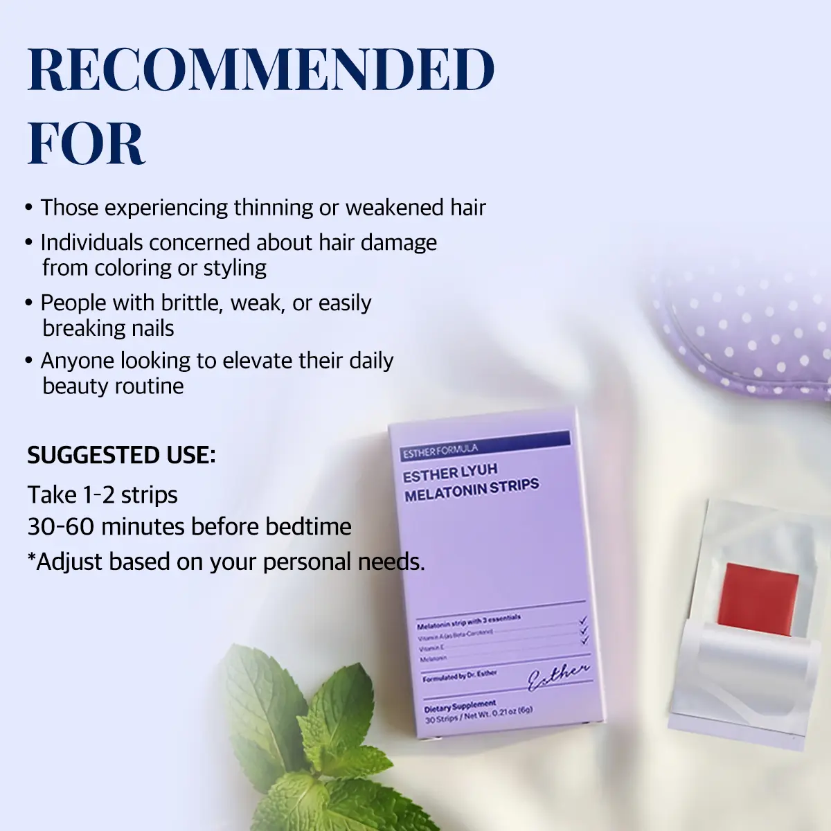 This formula helps support both sleep quality and skin recovery, so you wake up looking and feeling better.*