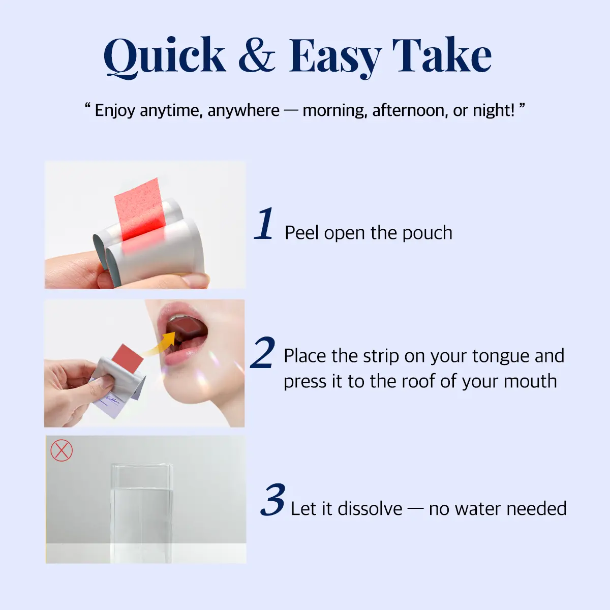 Unlike pills, this oral strip melts on your tongue for quick absorption — no water needed.