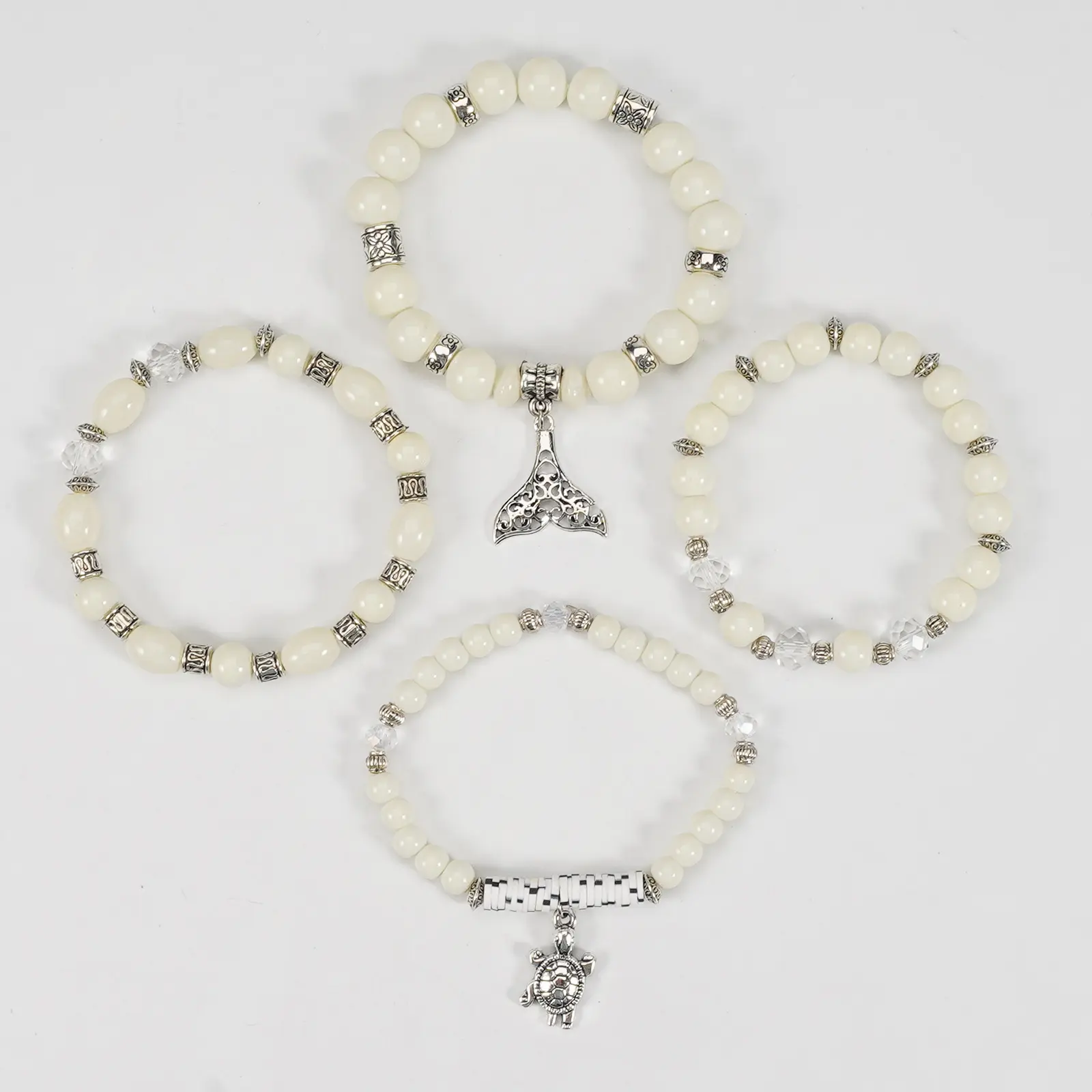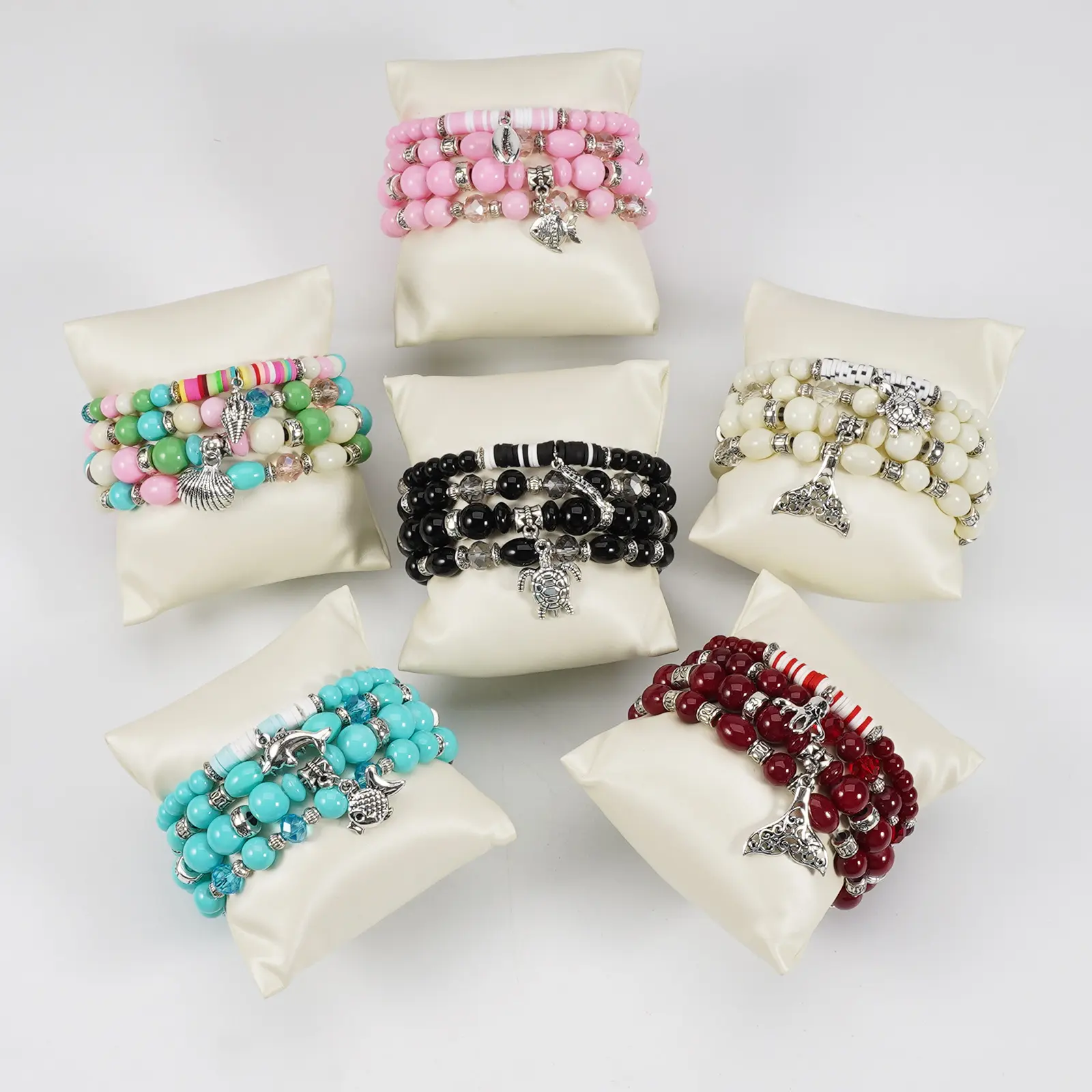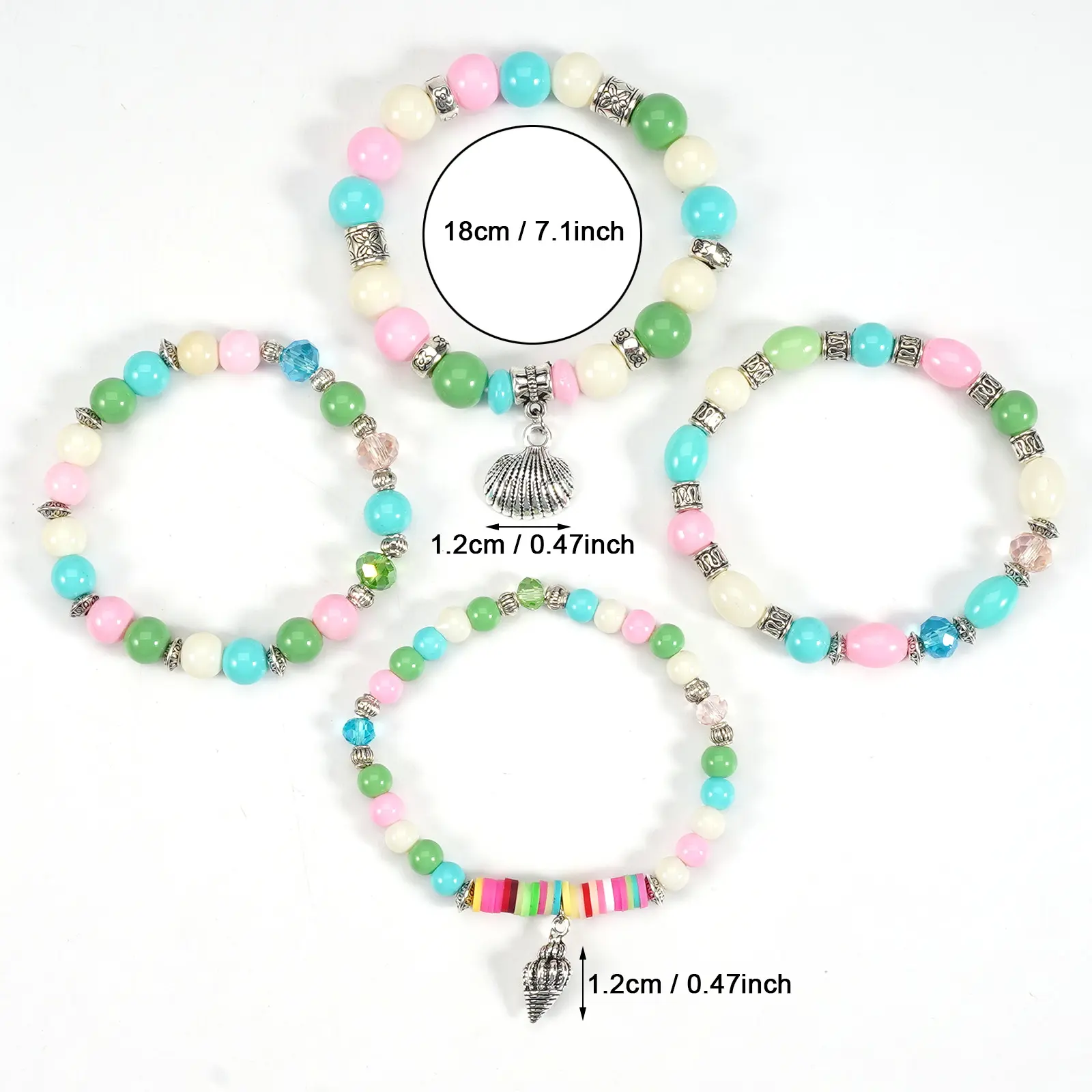 ·Material: The bracelets are made of acrylic and glass beads, featuring ocean-themed designs. 🐚