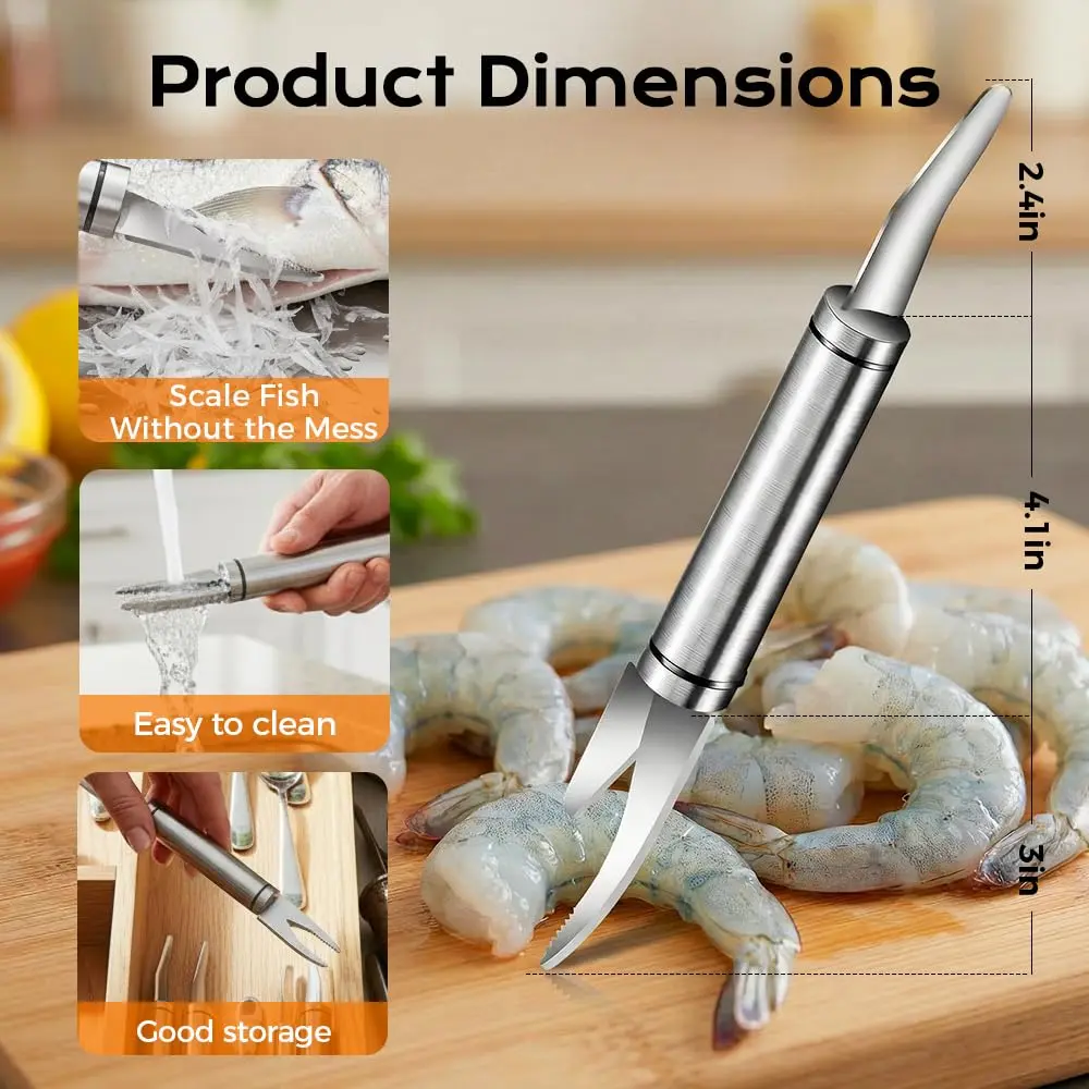 ·Multifunctional: Includes shrimp deveiner, fast shrimp peeler, and fish scale remover.
