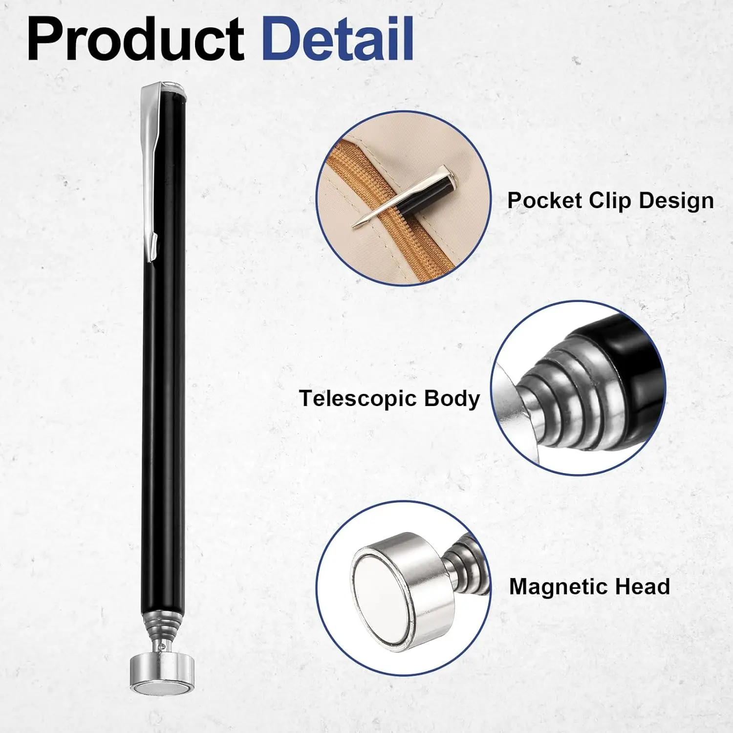 ·Feature - The 5 LB magnetic telescoping pickup rod extends from 5.3" to 24", allowing you to retrieve nails, screws, and keys that may be nearby or hidden out of reach in corners, on desks, or even inside cars; with its pocket clip and slim body, this tool is convenient for easy storage and portability, making tough retrieval tasks a breeze.