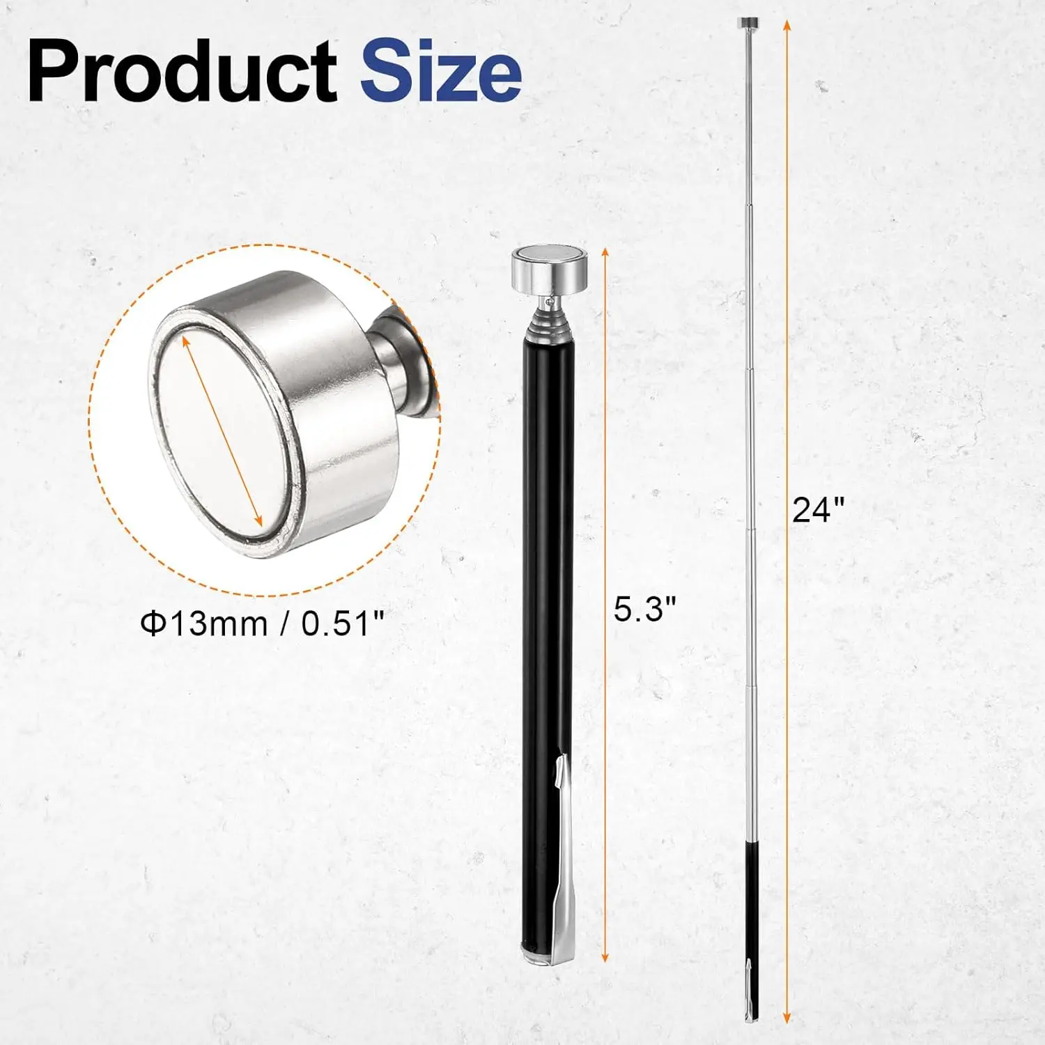 ·Size - The magnetic pickup tool diameter is 13mm / 0.51", extendable from 5.3" to 24", the max holding weight of the magnet is up to 5bs.
