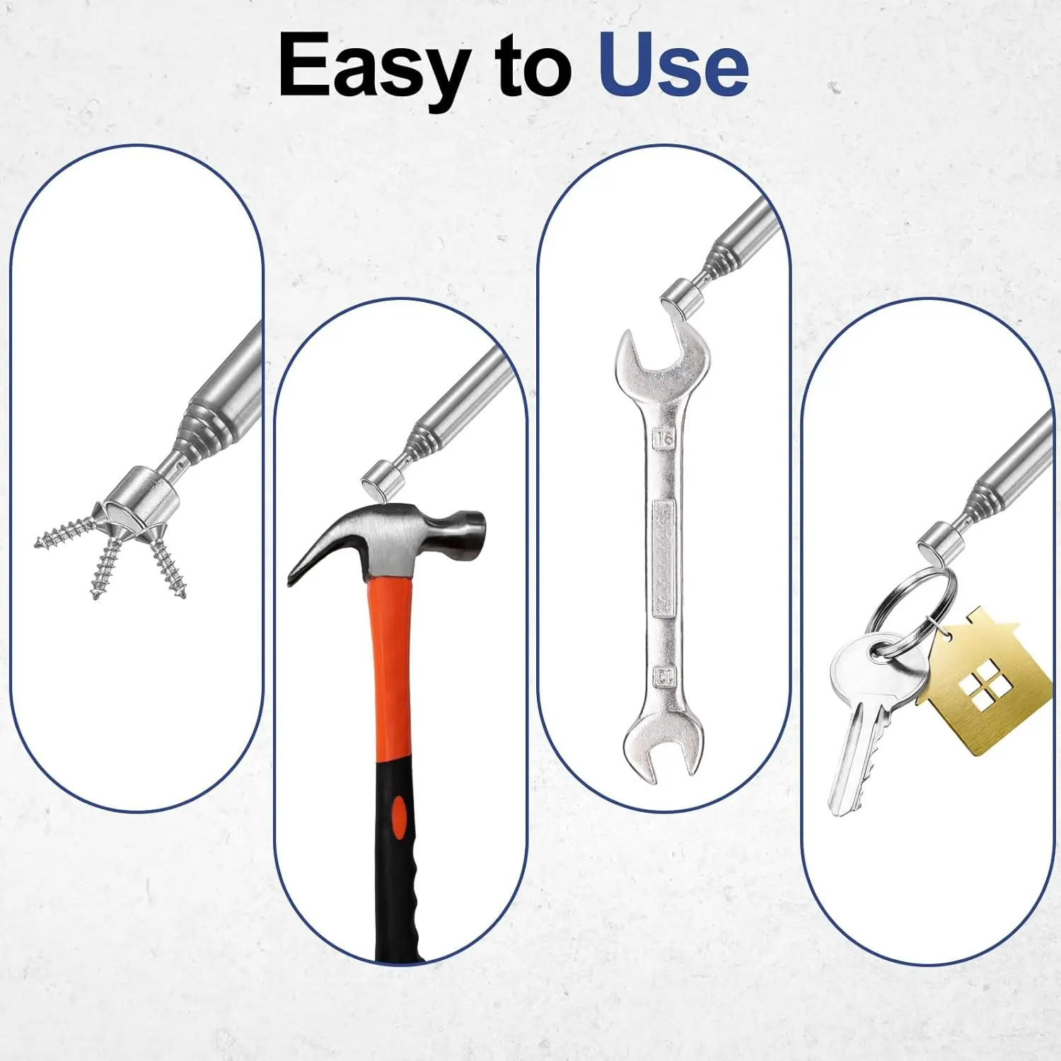 ·Application - The telescoping magnetic stick is a useful tool; its magnet easily attracts nuts, nails, screws, bolts, and even hammer heads. It is perfect for auto repair workers who use it in engine areas, machinists for tidying up workshops, and electricians for working in narrow spaces. It saves time and improves efficiency.