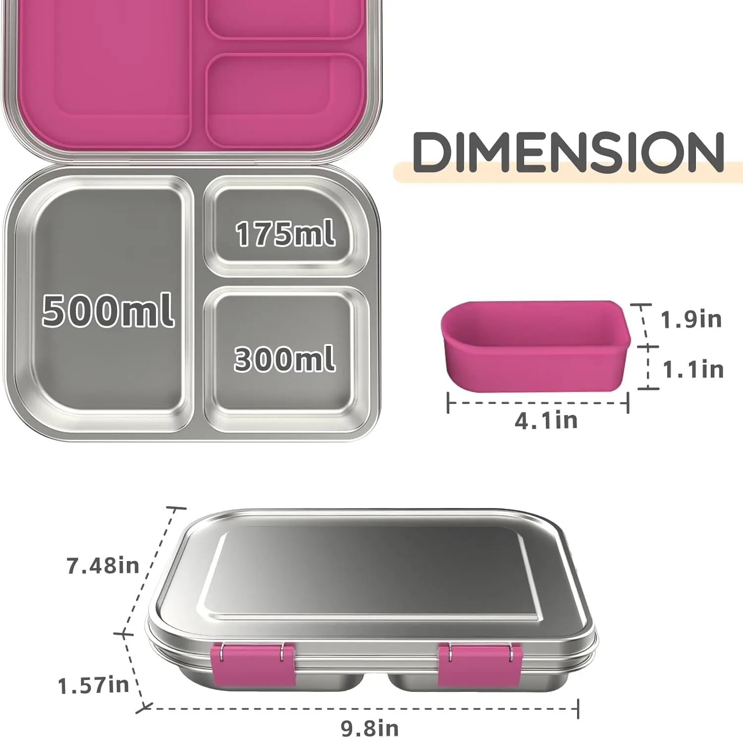 ·Versatile & Spacious: Pack smarter with our versatile Lunch Containers! The 3 compartments plus an optional 4th silicone container offer plenty of space to separate snacks, sandwiches, and sides. Ideal for portion control, it’s a must-have for students and busy professionals.