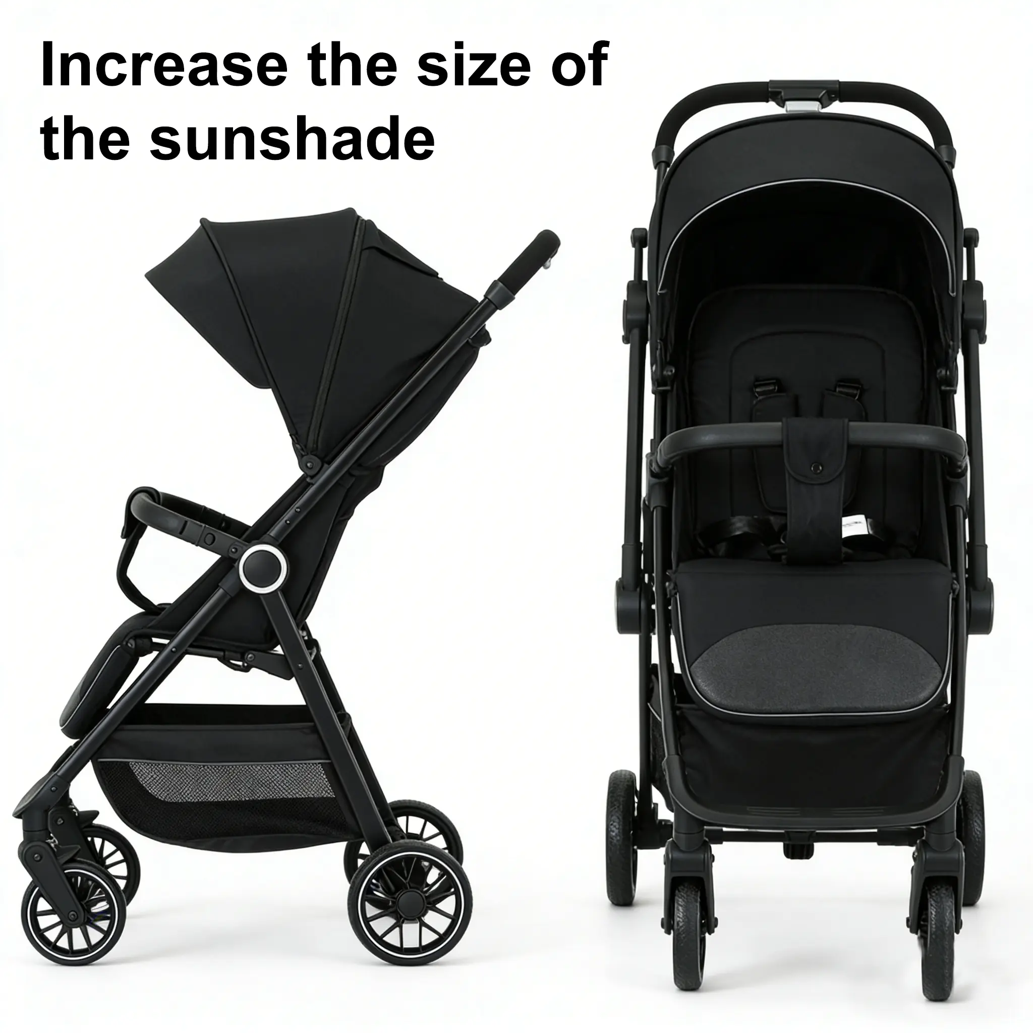 The stroller converts from a sitting to a lying position, providing flexibility for your child's needs. It includes a sunshade for UV protection, ensuring your child's comfort. The versatile design caters to various scenarios, making it a practical choice for everyday use. ☀️