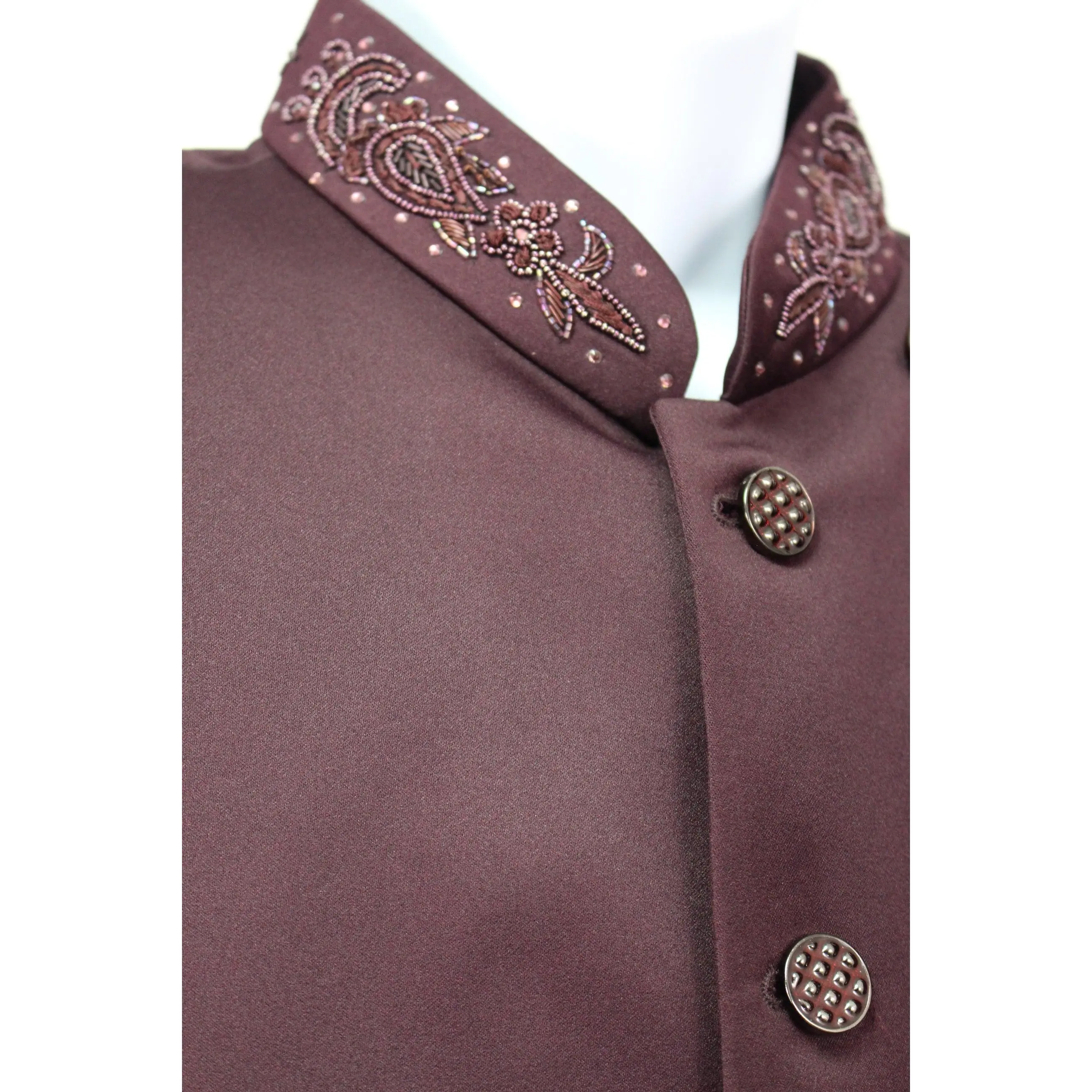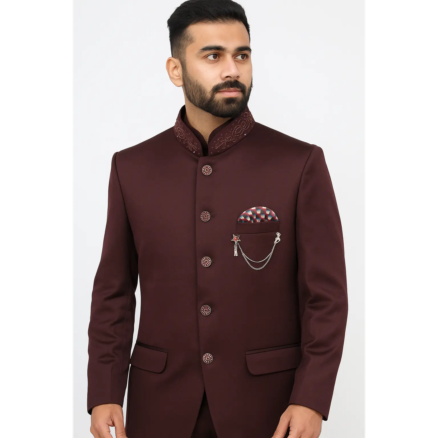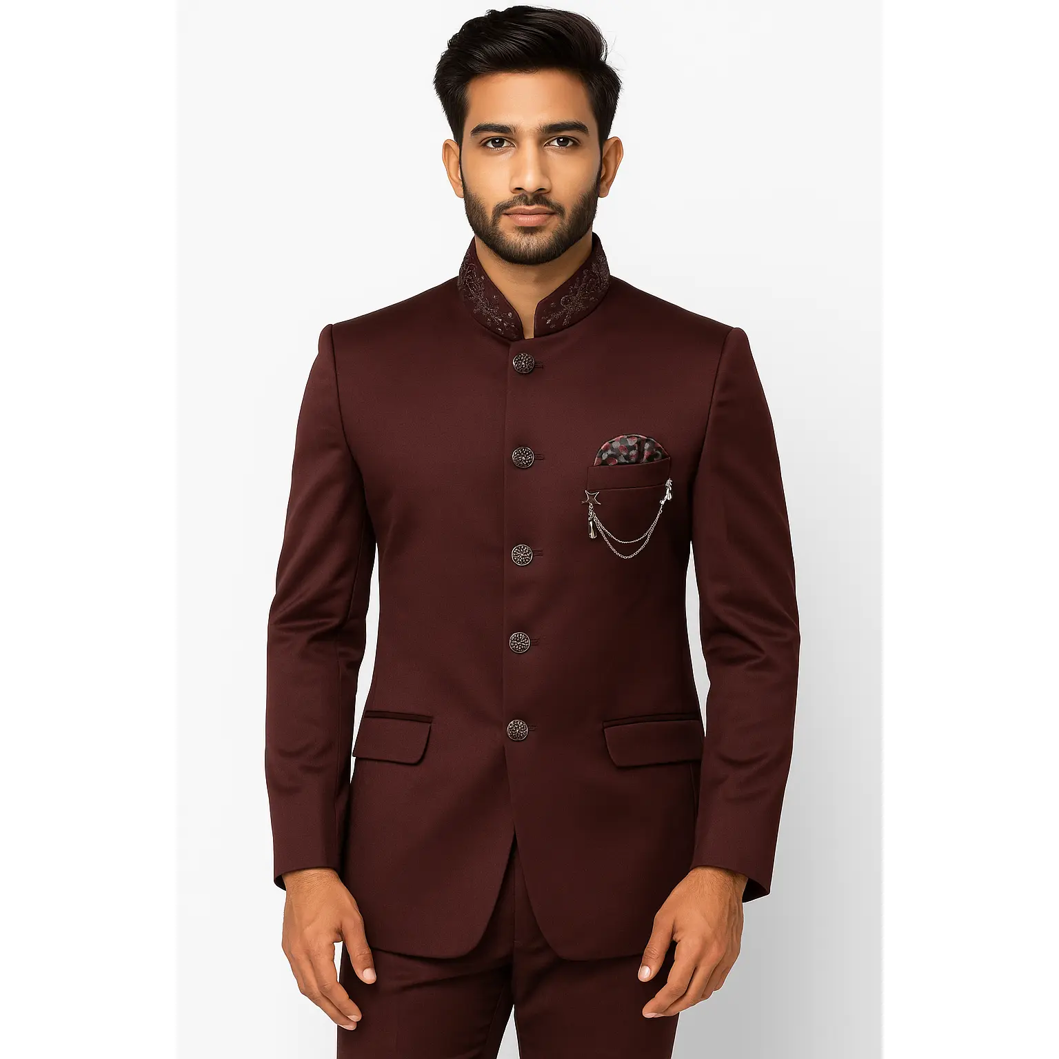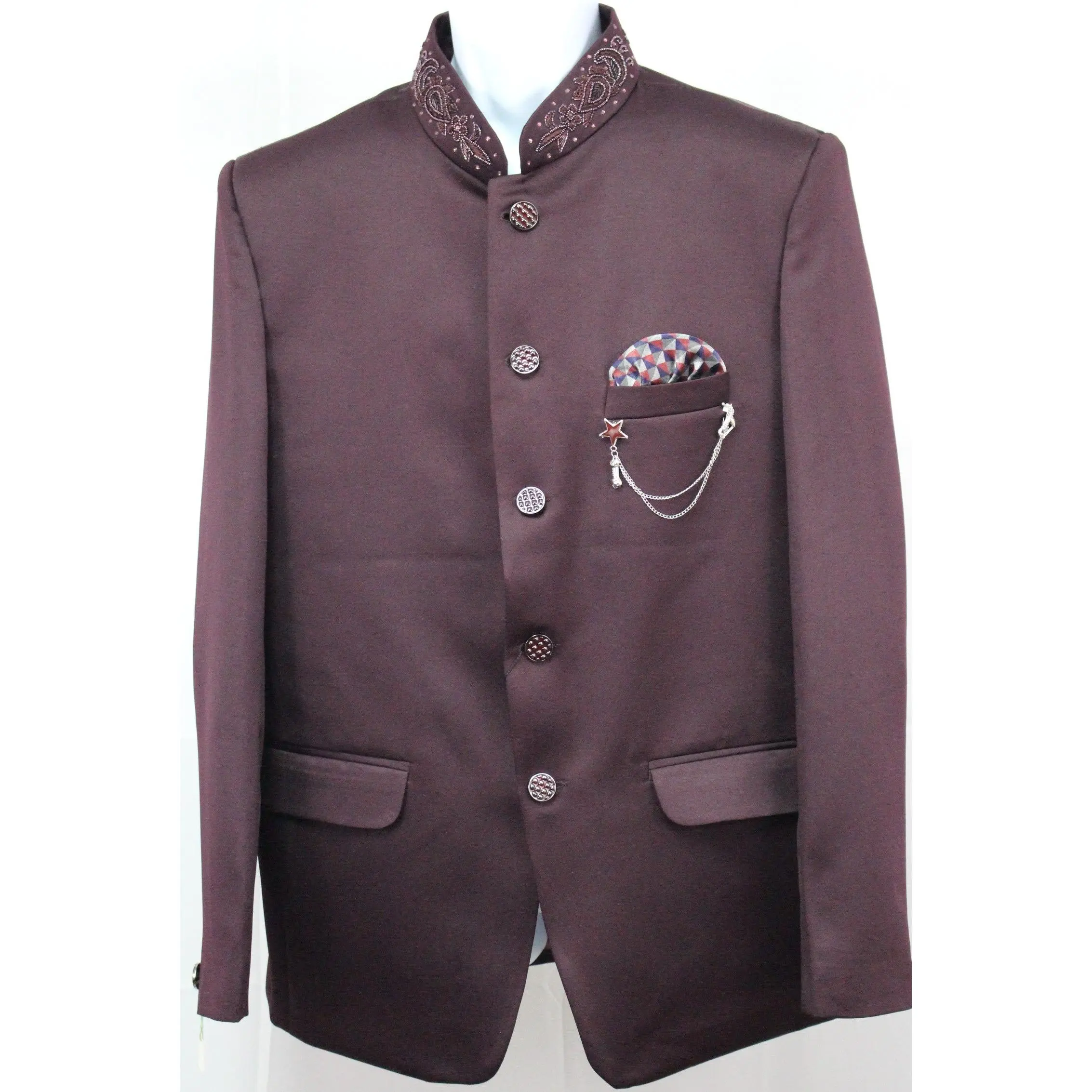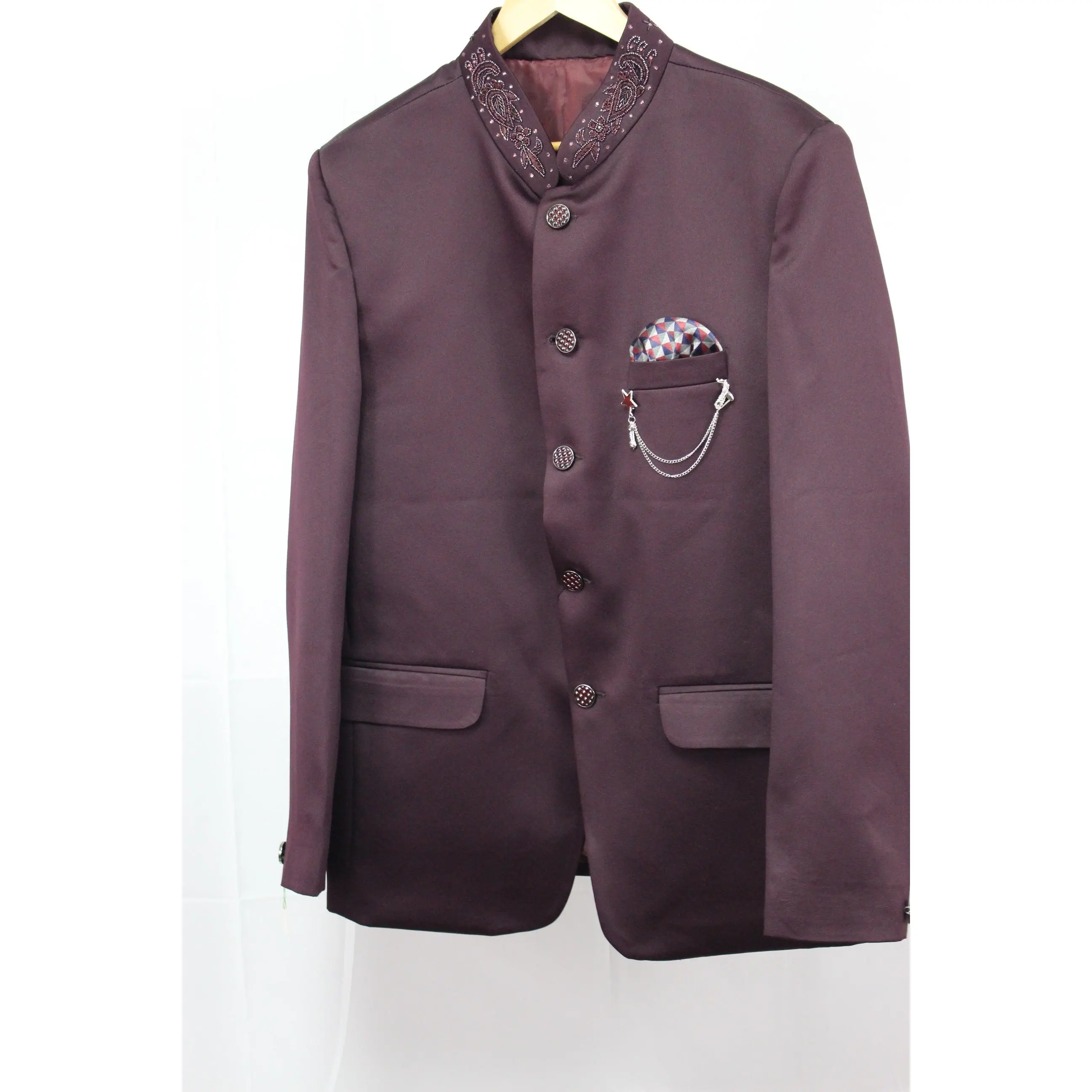 Burgundy Colored Two Piece Suit for Men with Hand Embroidered Collar