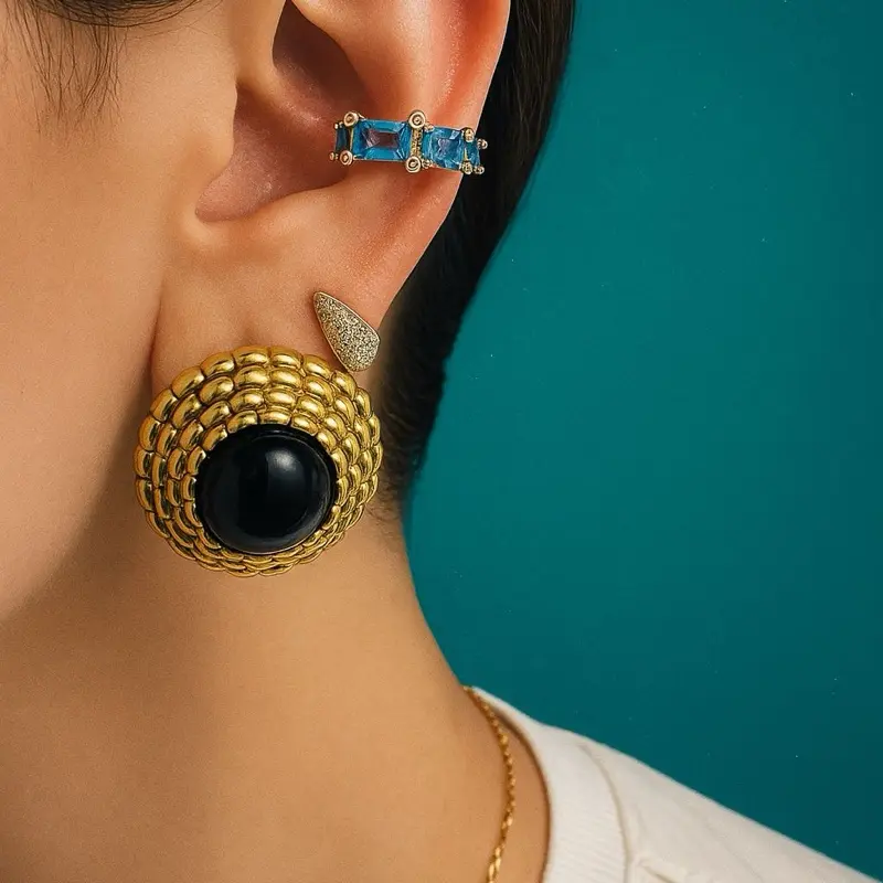The Ava Earcuff is designed with green, red, and blue Zirconium, which adds a pop of color to the earcuff and makes it stand out. The green Zirconium adds a calming and soothing effect to the earcuff, making it a great choice for those who want to add a touch of elegance to their outfit. The red Zirconium adds a bold and vibrant touch to the earcuff, making it a great choice for those who want to make a statement. The blue Zirconium adds a cool and refreshing effect to the earcuff, making it a great choice for those who want to add a touch of sophistication to their outfit.