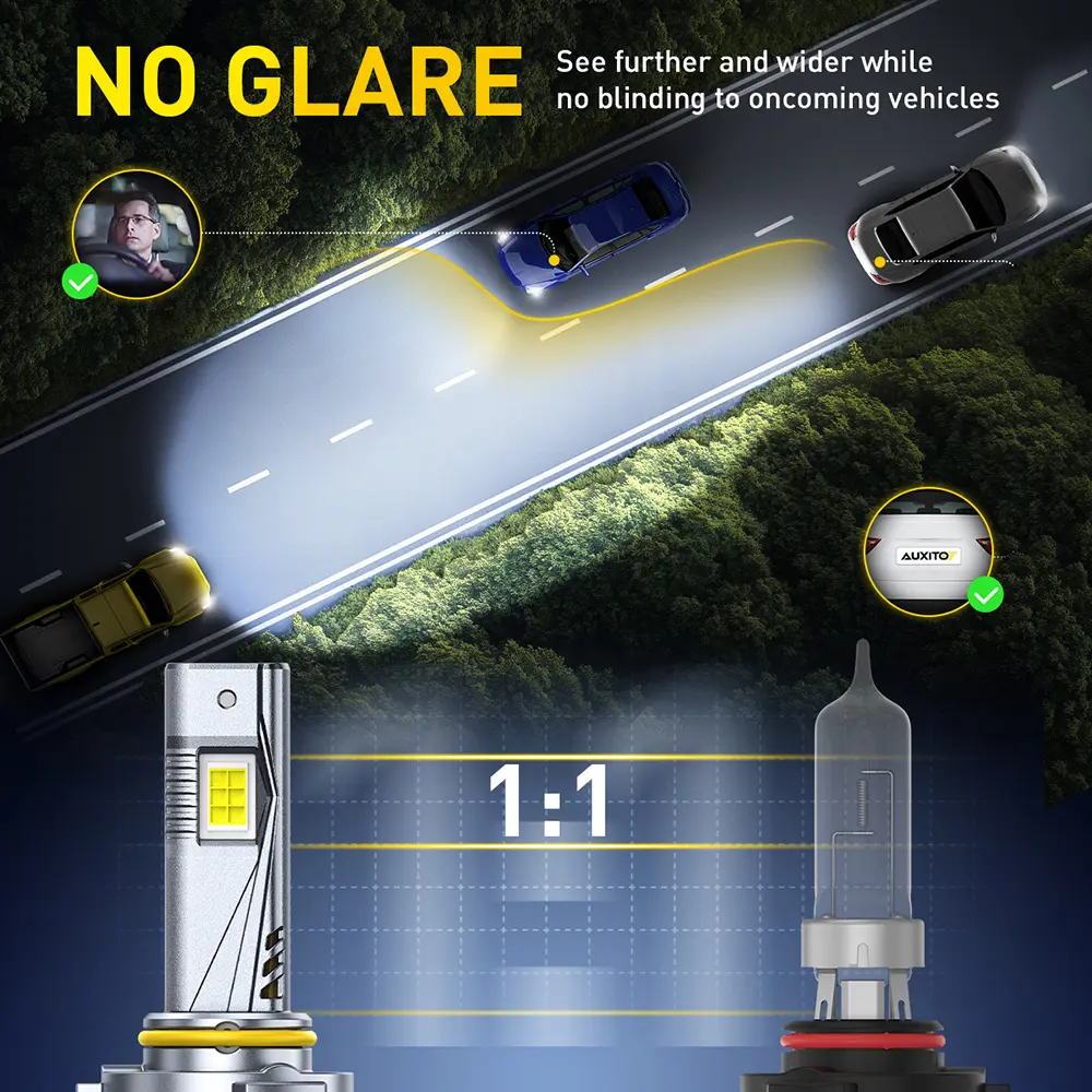 【MOST PERFECT BEAM PATTERN】The lights precisely mimic the factory halogen bulbs, and after hundreds of tweaks and calibrations, achieved the best light pattern and clearer visibility. There are no dark spots or shadow areas, and no blinding or glare to oncoming drivers while driving, which greatly enhances safety.