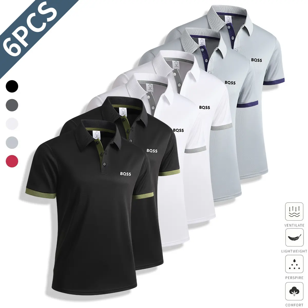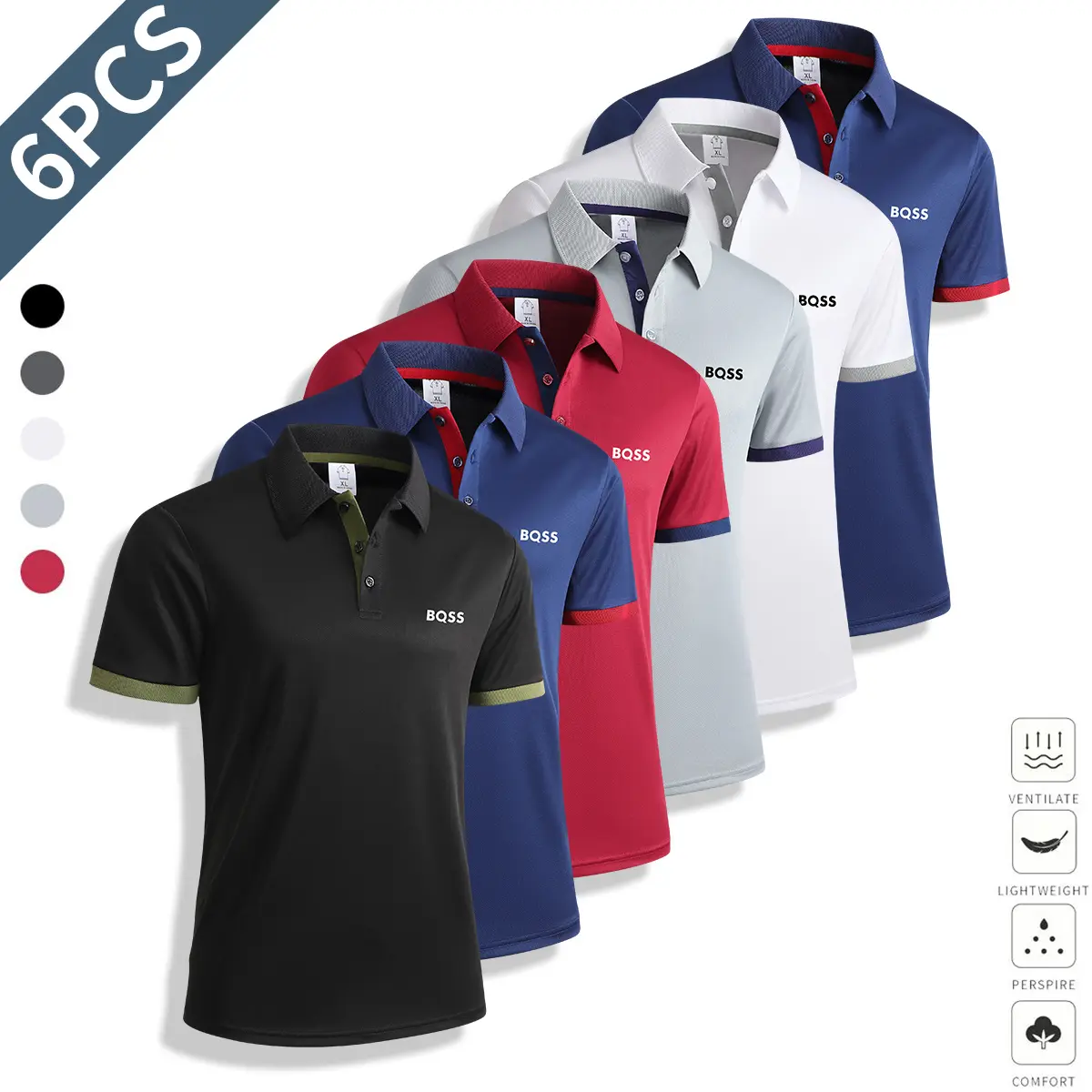 Men’s Summer Fashion Turn-Down Collar Short-Sleeve Golf T‑Shirt, 6‑Pack — Suitable for Business and Leisure Activities Such as Tennis and Golf; Men’s Apparel, Ideal as a Gift