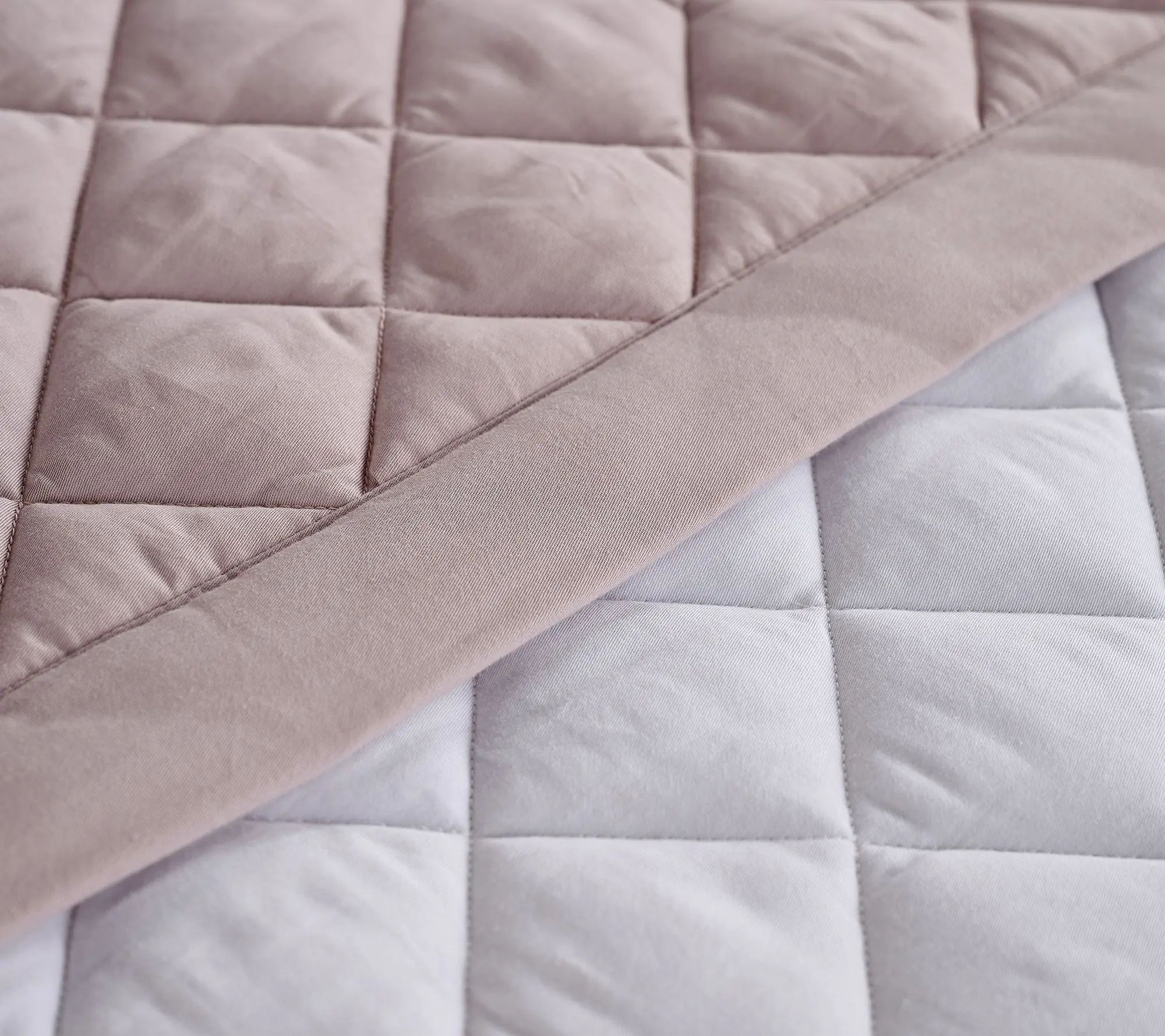 The W By Wamsutta Down Alternative Reversible Blanket Set includes a Down Alternative blanket, and 2 shams. The Down alternative blanket features 4 Diomond Quilting on a 100% Cotton wonder weave fabric and reverse to solid contrast color and contrast flange. This is available in 5 colors: Tan, Light Blue, Lilac, Aqua, Light Grey.1 Blanket 70x86", 1 Std Pillow 20x26". Face & back 100% cotton. Filling 100% polyester. Machine wash cold gentle. non-chlorine bleach when needed. tumble dry low. do not dry clean. warm iron