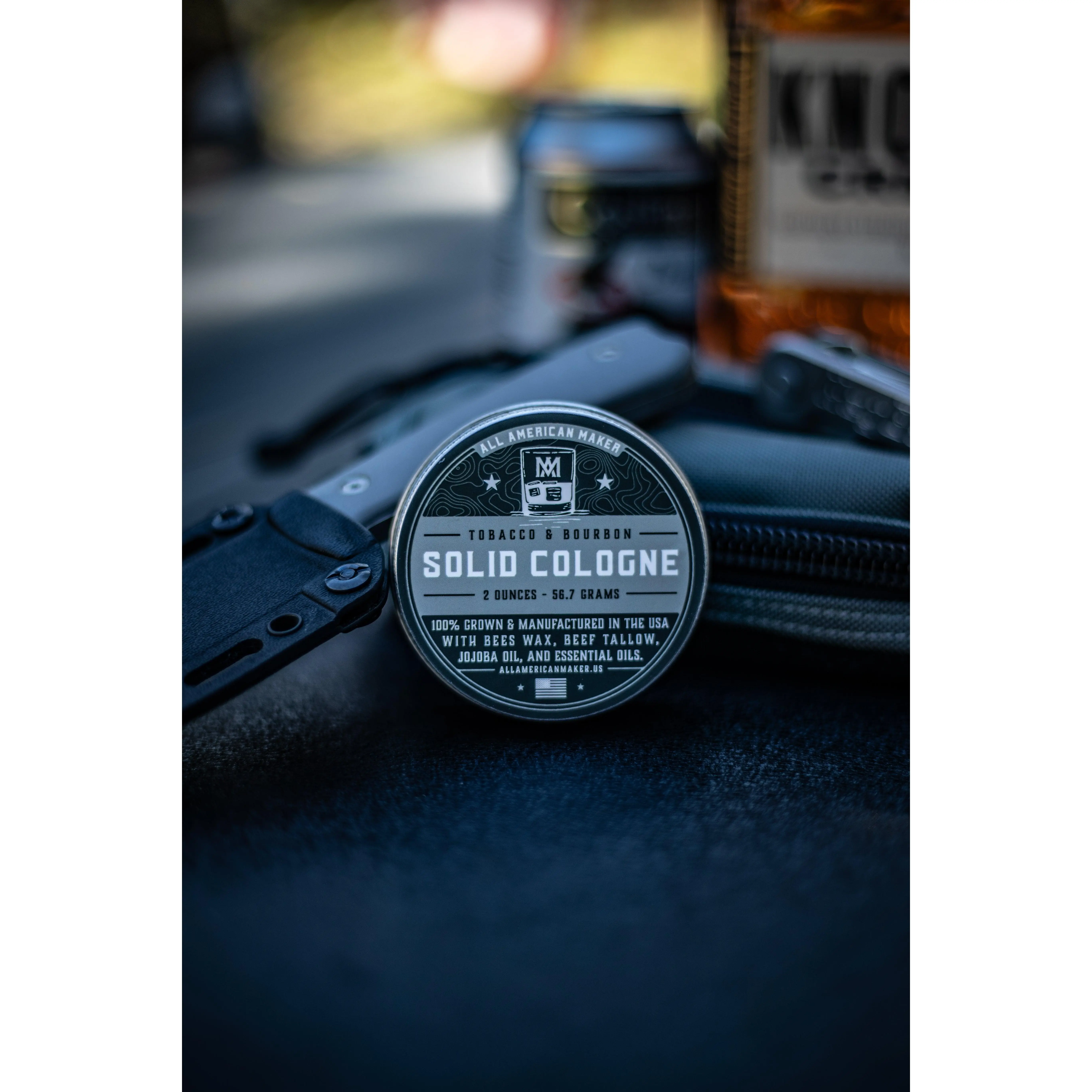 Tobacco & Bourbon Solid Cologne is crafted entirely in the USA, with ingredients grown and processed domestically. Hand-poured in Jamestown, NY, this cologne blends rich tobacco and smooth bourbon notes, offering a sophisticated, long-lasting scent in a convenient solid form. Ideal for those seeking a refined fragrance with artisanal quality and American-made integrity.