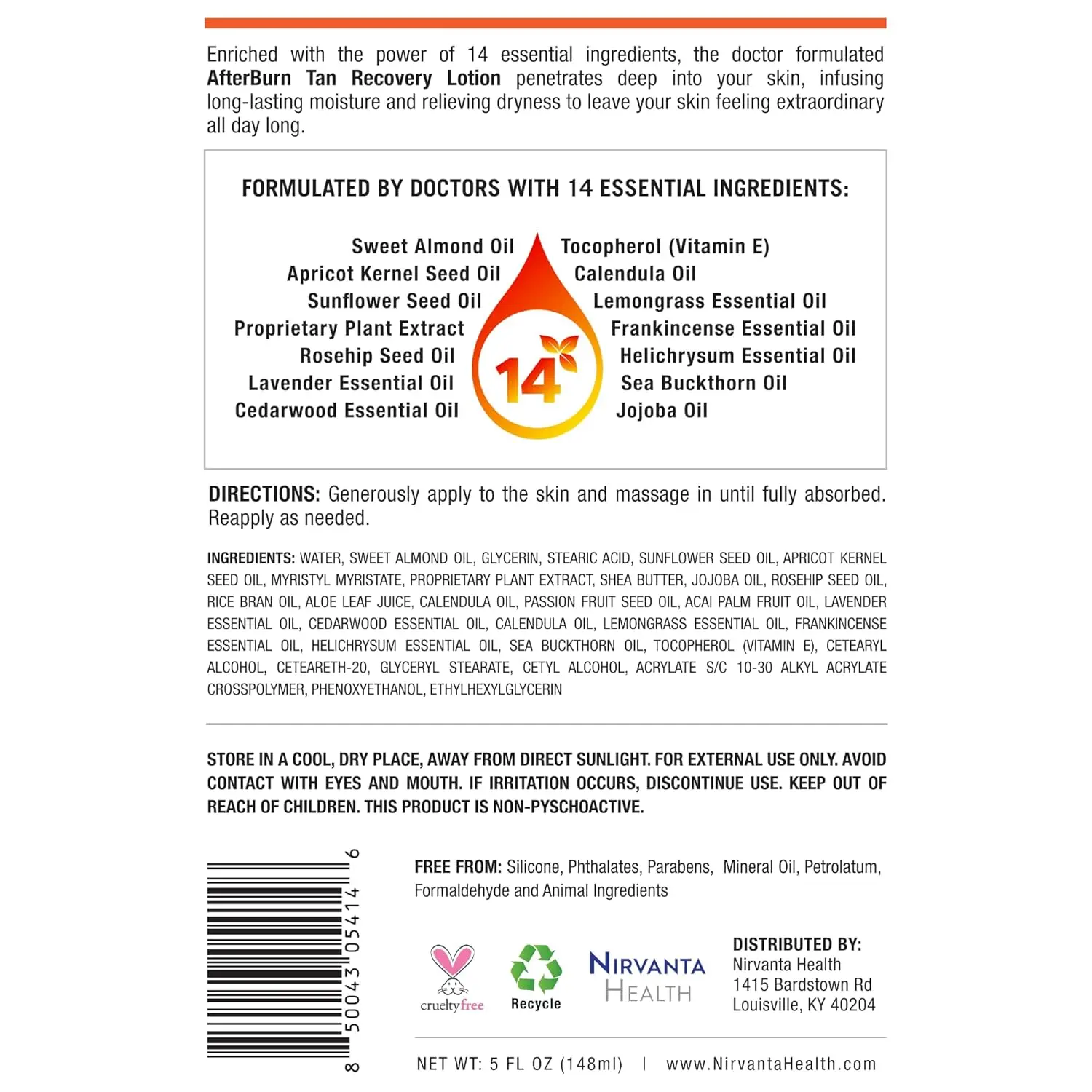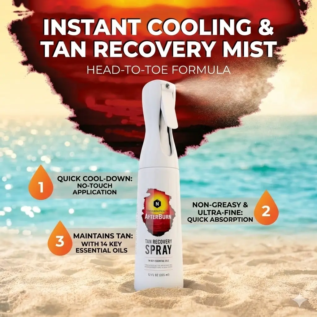 AfterBurn Tan Recovery Mist with Essential Oils Nirvanta Health - Aftersun Care For Deep Hydration and Minimal Peeling - Doctor-Formulated Aftersun Lotion w/ Natural Ingredients - Gentle Soothing Hydrating Skin Moisturizer