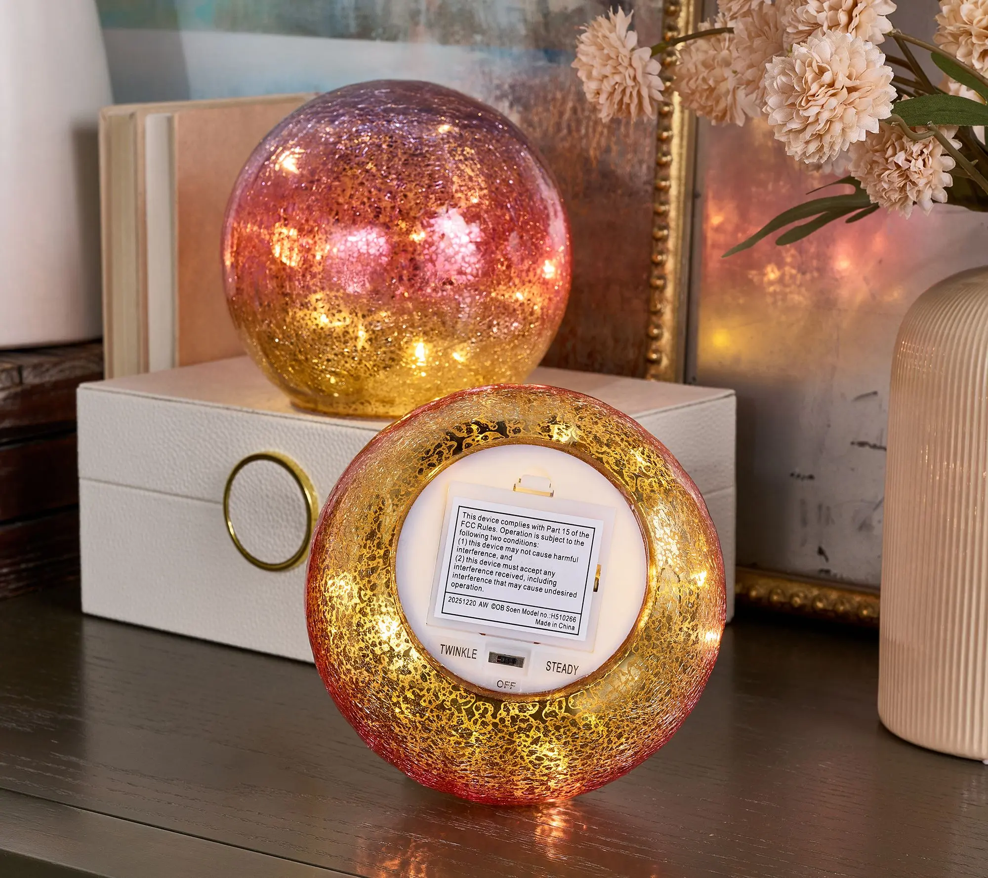 Set of (2) 5.5" Illuminated Sunset Mercury Glass Spheres by Valerie