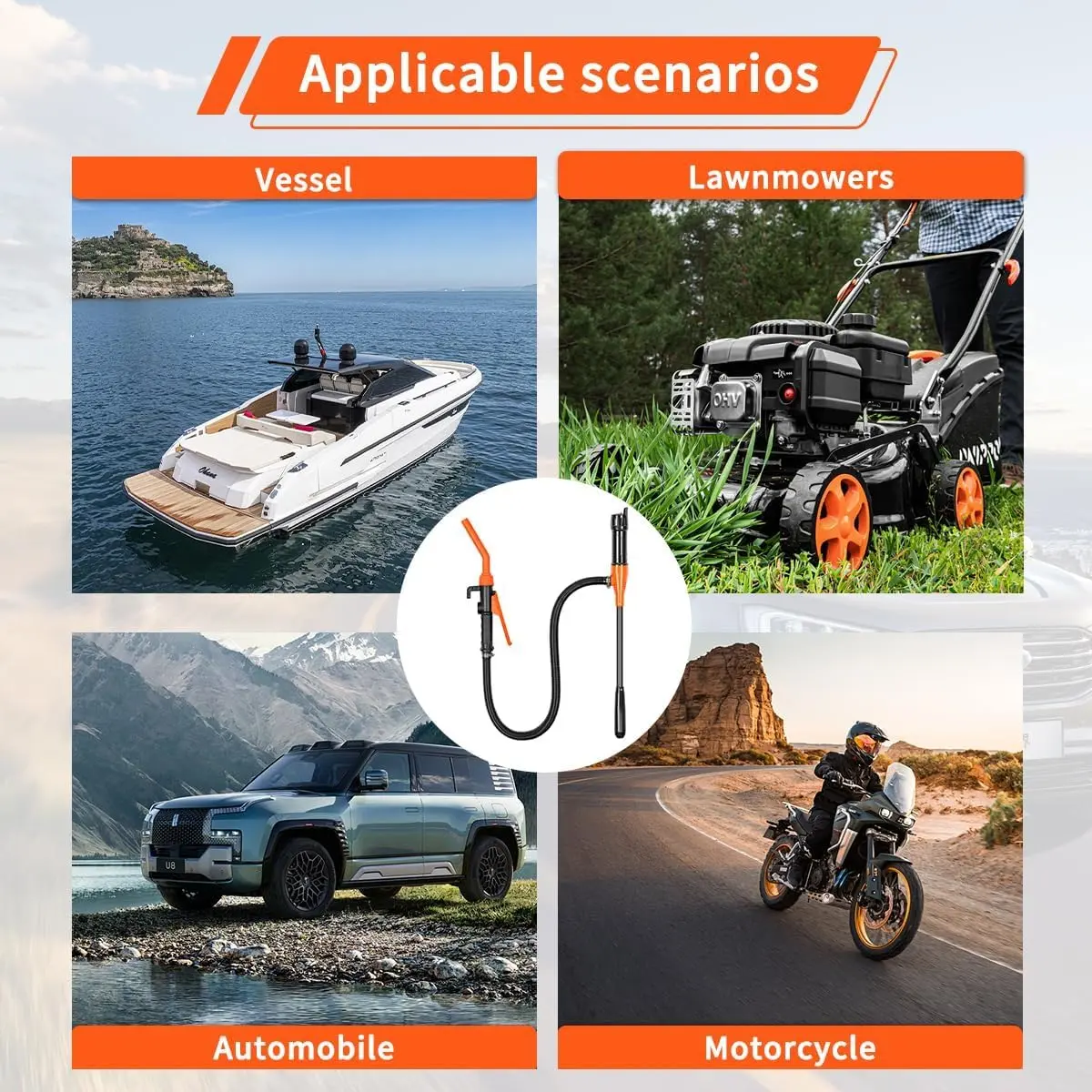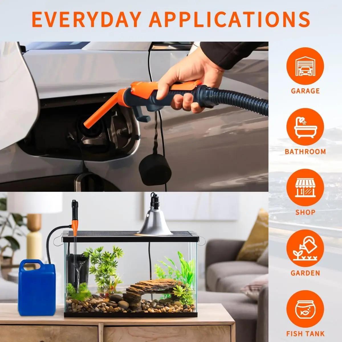 ·Wide Applications: Fuel pumps are extremely versatile. You can use them to pump various liquids in your garage, aquarium, home, and garden. This general-purpose fluid transfer pump features a lightweight design for easy portability and is suitable for a wide range of applications: cars, motorcycles, boats, camping, RVs, and more.