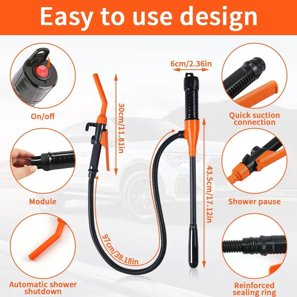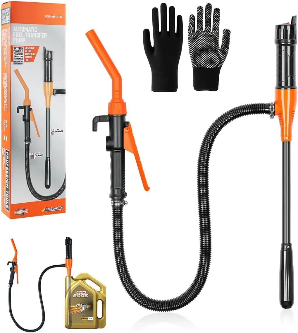 ·Easy To Use: This transfer pump is battery-powered, ensuring safe and easy liquid transfer. The 16-inch hose holds 11 to 19 liters of liquid and extends up to 90 cm. This manual pump is commonly used for transferring gasoline, non-potable water, kerosene, and other non-corrosive liquids.