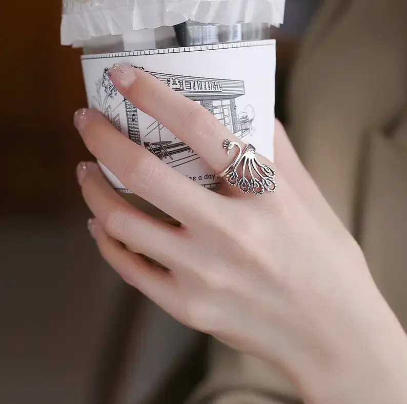 5. Exquisite 18K 925 Sterling Silver Gradient Phoenix Peacock Adjustable Ring (Size 7-9)
