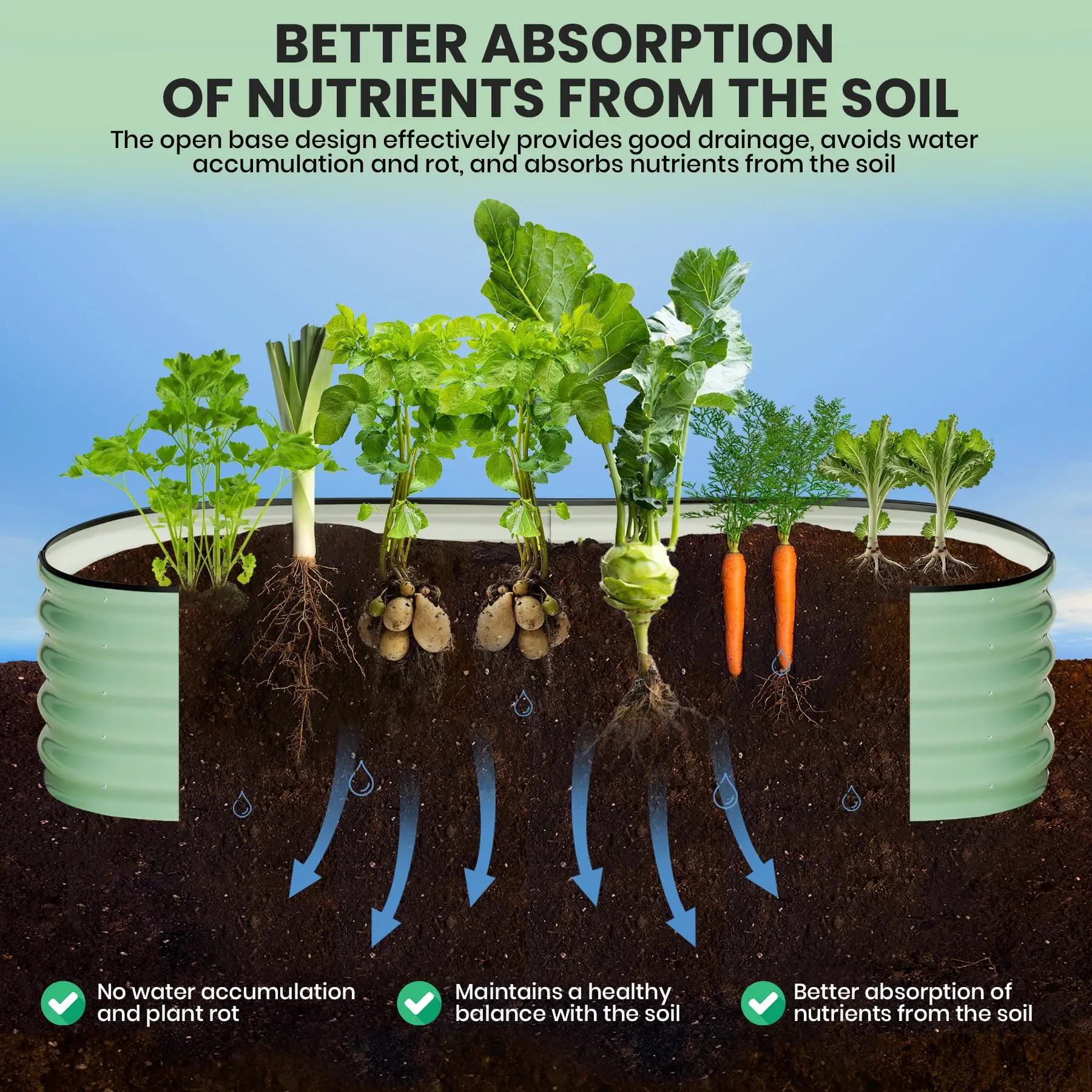 ·1.Promotes Healthy Root Growth: Open base design enables deep root penetration and superior drainage, ensuring colorful plants and abundant harvests.